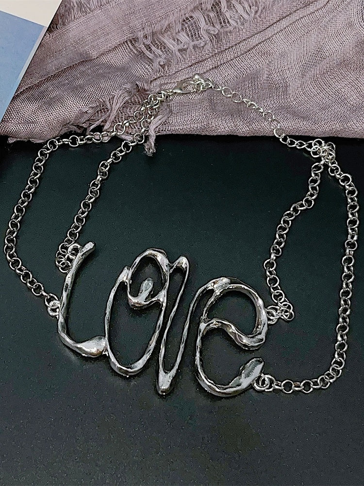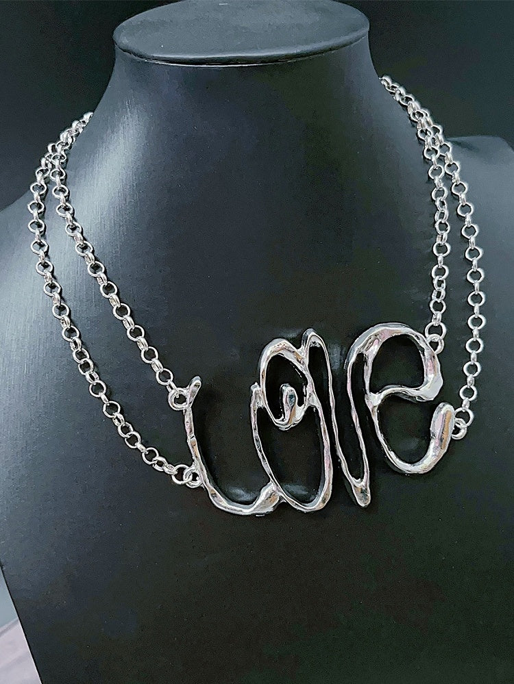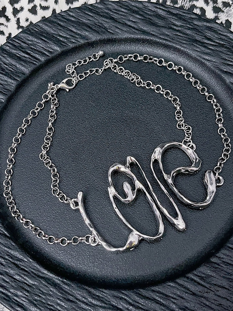 Anhänger Buchstaben Halskette Y2K Silber