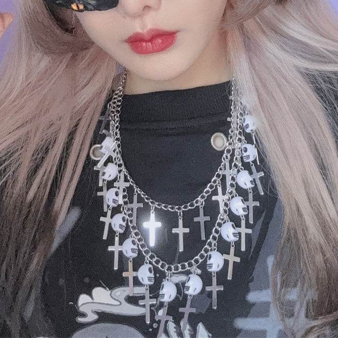 Punk Silber Skelett und Kreuz Anhänger Halskette