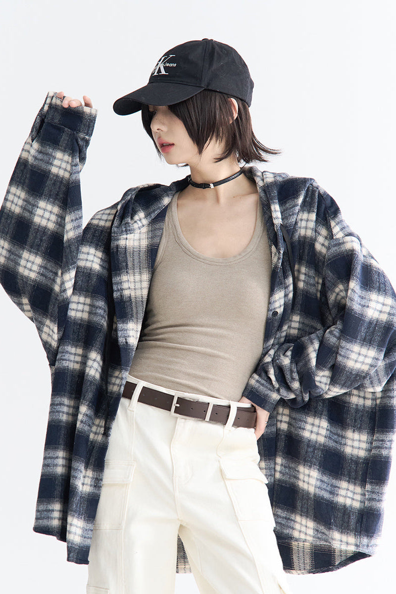 Schößchen-Kapuzenpullover mit Karomuster