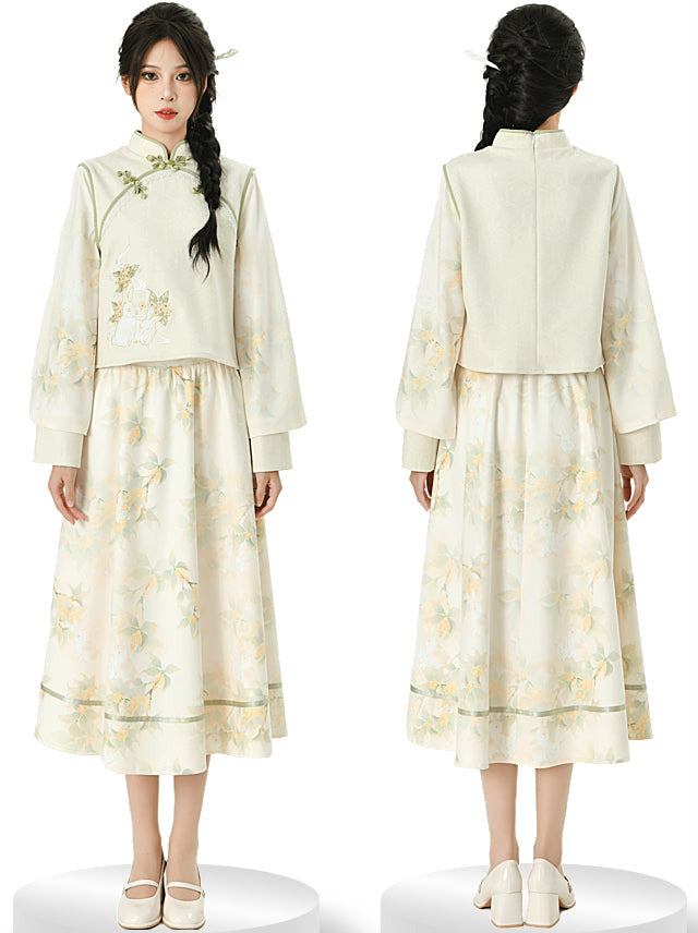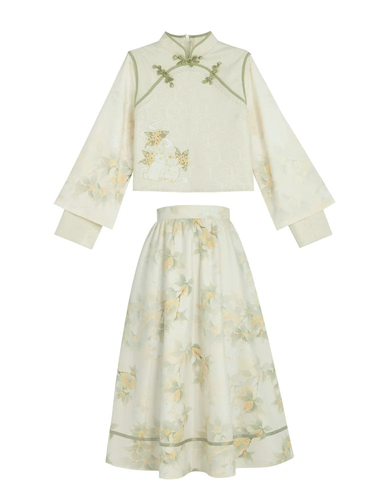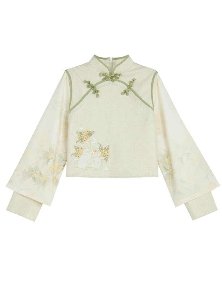 Dieser bezaubernde chinesische Anzug besticht durch die zarte Stickerei zweier verspielter Kaninchen in einem wunderschönen Wald. Hergestellt aus hochwertigen Materialien verleiht er Ihrem Outfit einen Hauch von Niedlichkeit. Bringen Sie Ihren inneren Charme mit zwei Kaninchen im Wald zum Vorschein.