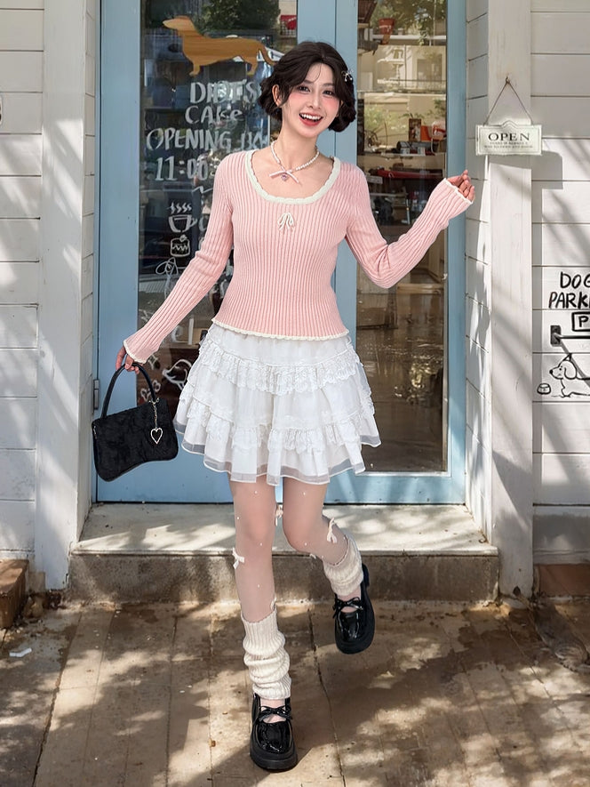 Rosa und weißes Old School Lolita Fashion Kleid Bowknot Detais Lolita JSK Set