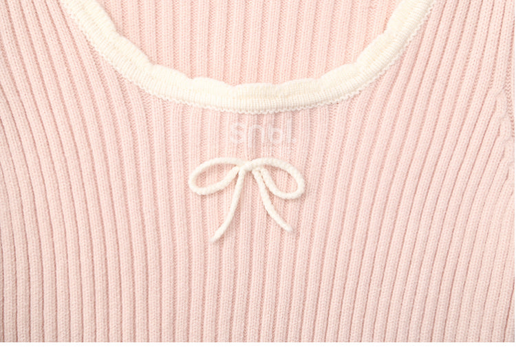 Machen Sie sich bereit für einen bezaubernden Look in unserem pinkfarbenen, eng anliegenden Stricktop mit Rundhalsausschnitt und Schleife! Mit seinen süßen pinkfarbenen Schleifendetails und dem schmalen Schnitt fällt dieses Top auf und bietet gleichzeitig Komfort und Stil. Perfekt für jeden Anlass – ein Must-have für Ihre Garderobe.