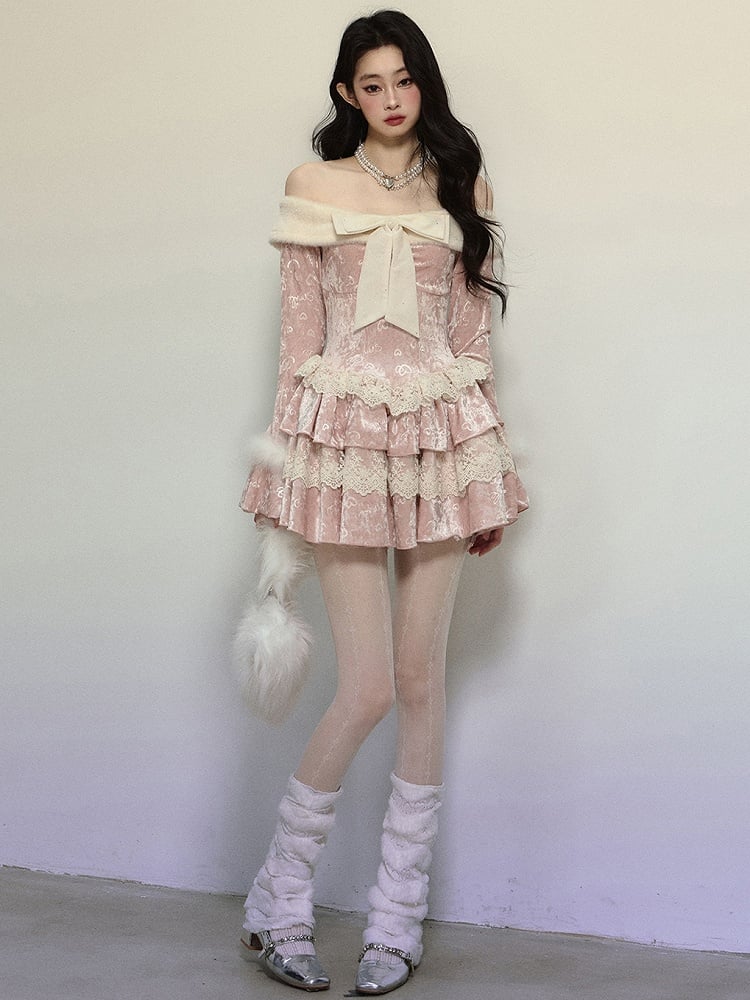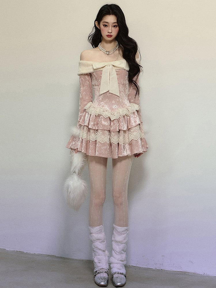 Dieses bezaubernde, schulterfreie Samtkleid mit rosa Schleifendetails, gestuftem Rüschenrock und Rüschen ist die perfekte Ergänzung für jede Garderobe. Mit seinem einzigartigen Design und den zarten Schleifendetails wird dieses Kleid Sie überall auffallen und Ihnen ein sicheres Gefühl geben. Der schulterfreie Stil und der weiche Samtstoff verleihen einen Hauch von Eleganz und Komfort.
