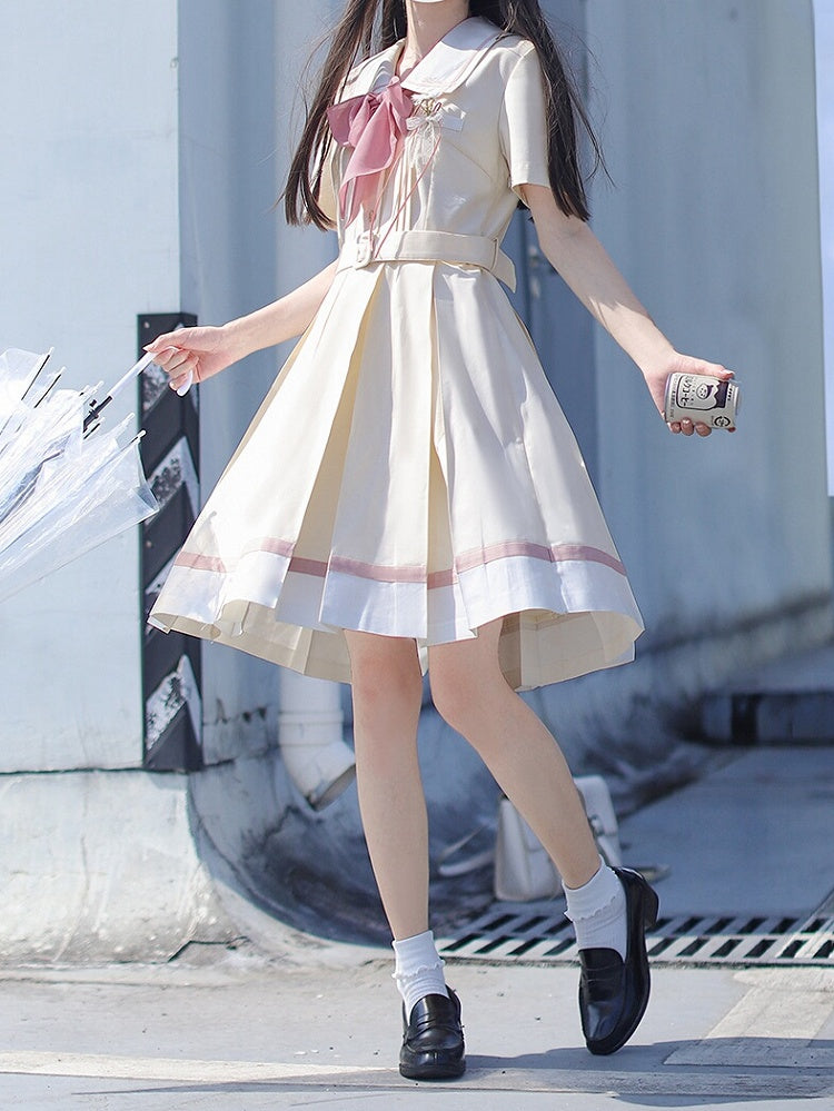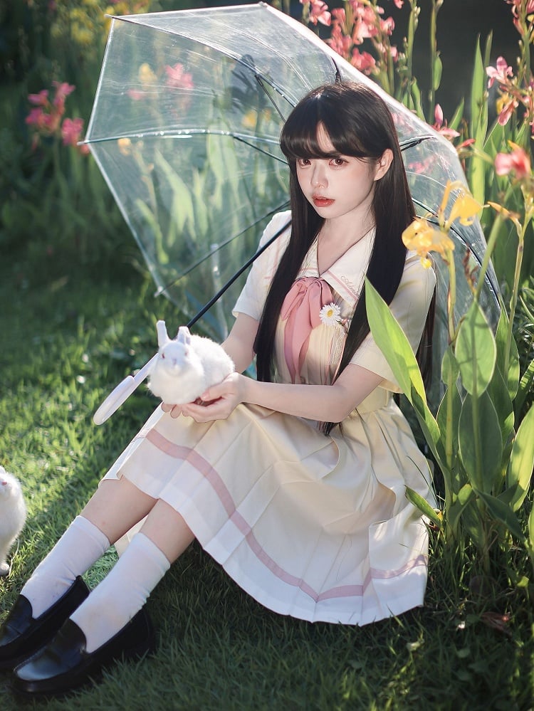 Rosa und weißes Old School Lolita Fashion Kleid Bowknot Detais Lolita JSK Set