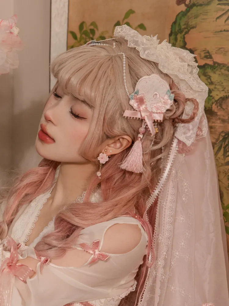 Rosa und weißes Old School Lolita Fashion Kleid Bowknot Detais Lolita JSK Set