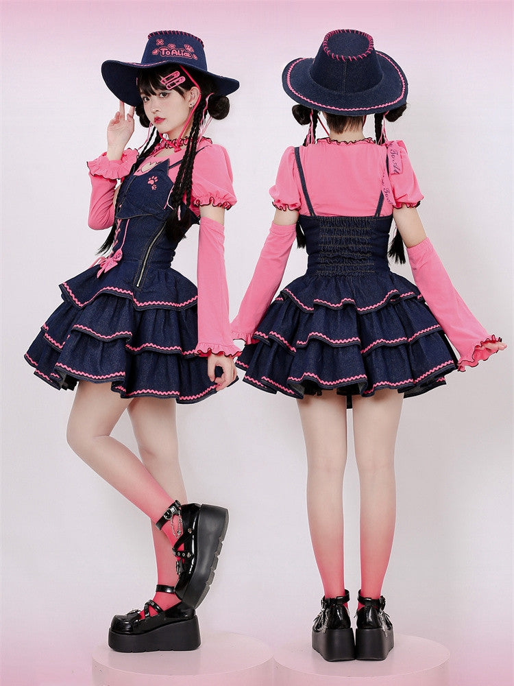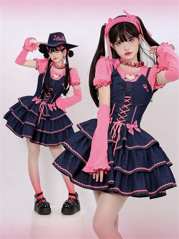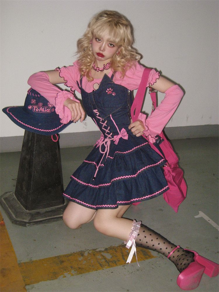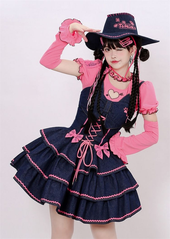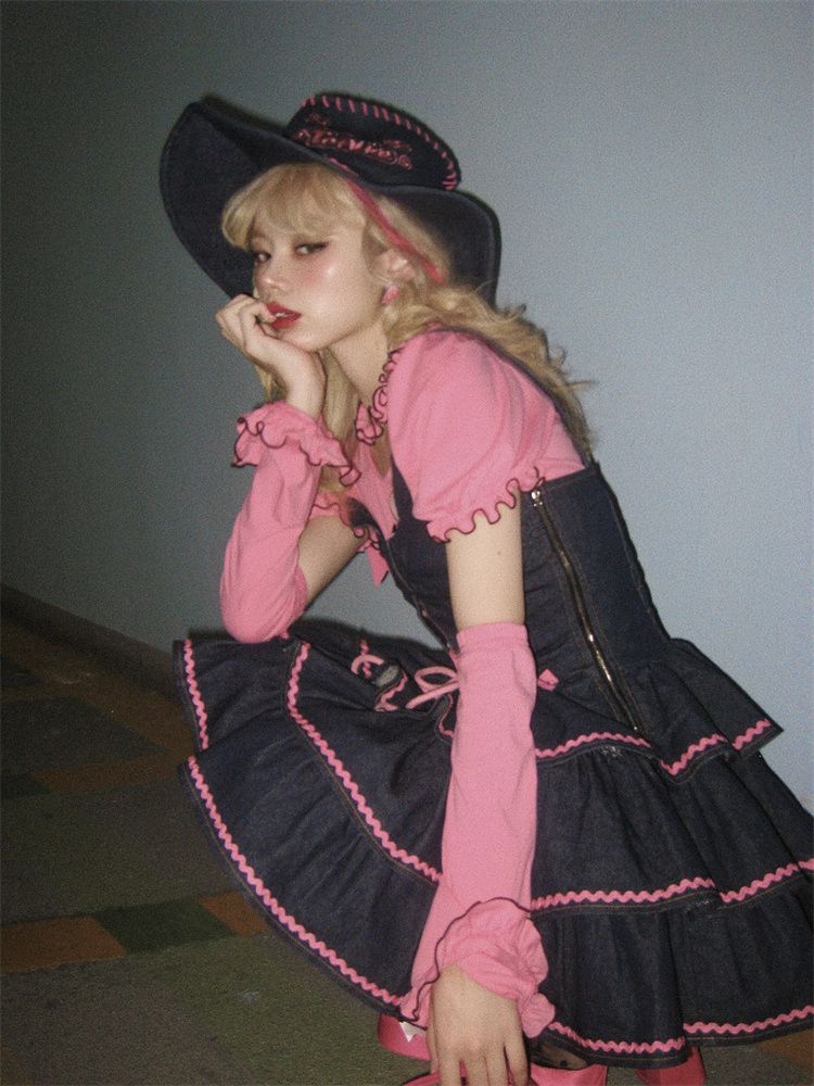 Rosa und weißes Old School Lolita Fashion Kleid Bowknot Detais Lolita JSK Set