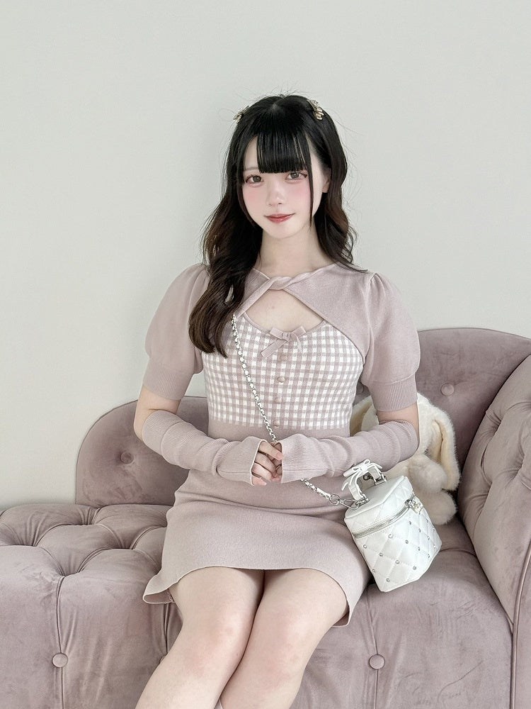 Pinkes Kei-Strickkleid mit kantigem und süßem Cutout-Twist-Jirai-Gewagtes Kleid: mit kariertem Hals