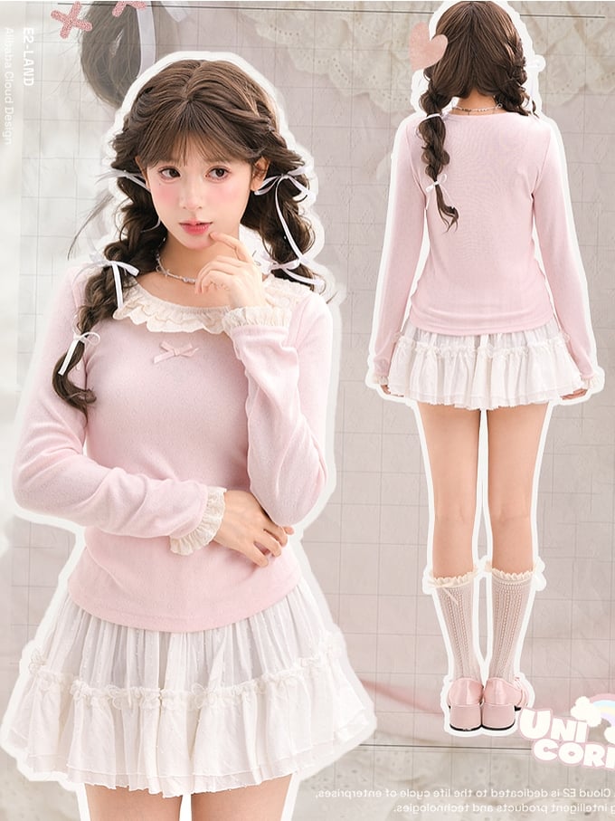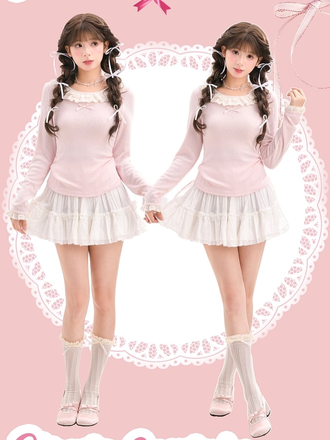 Rosa und weißes Old School Lolita Fashion Kleid Bowknot Detais Lolita JSK Set