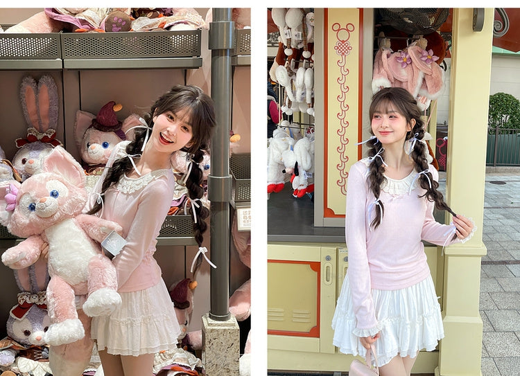 Dieses süße Top besticht durch zarte rosa Spitzenbesätze und einen schmeichelnden Slim-Fit-Schnitt. Verleihen Sie Ihrem Look einen Hauch von Süße und Selbstbewusstsein. Perfekt für vielseitige Outfits, verleiht dieses Top Ihrer Garderobe eine feminine Note.
