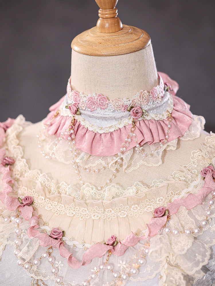 Rosa und weißes Old School Lolita Fashion Kleid Bowknot Detais Lolita JSK Set
