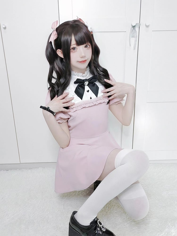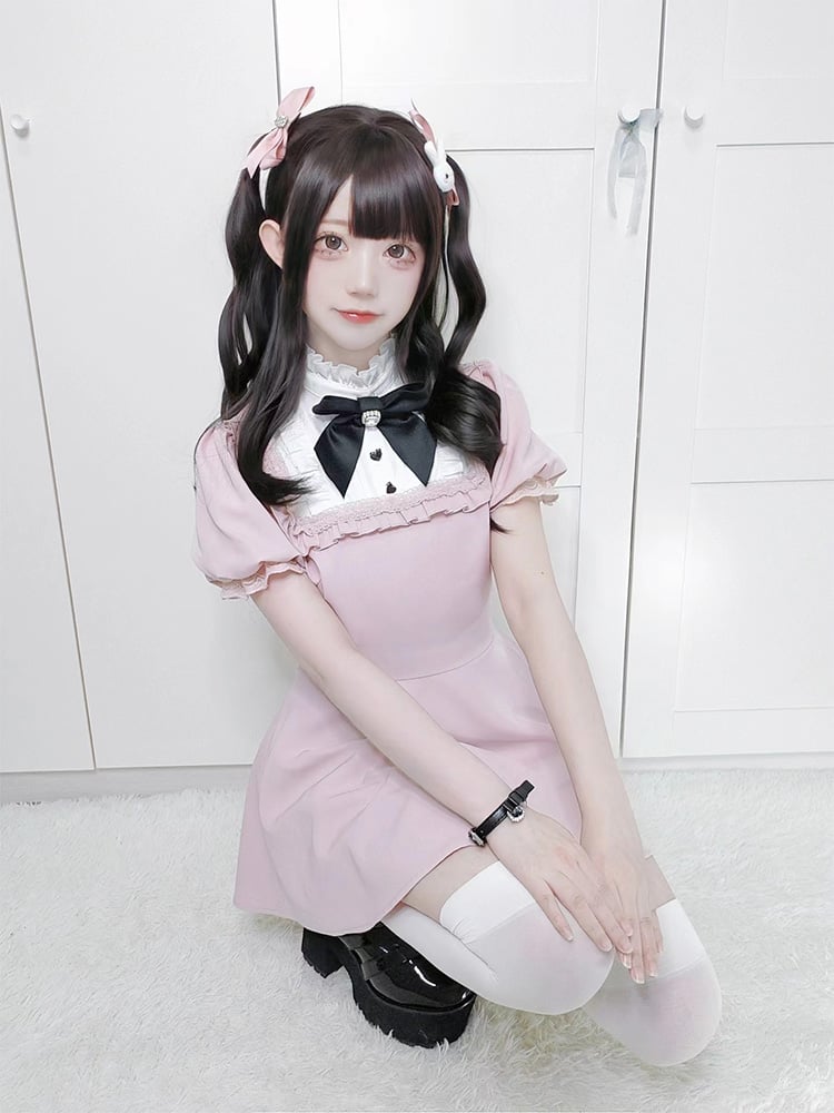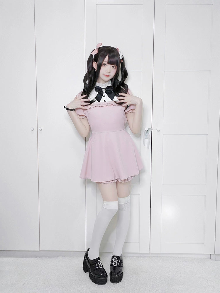 Rosa und weißes Old School Lolita Fashion Kleid Bowknot Detais Lolita JSK Set
