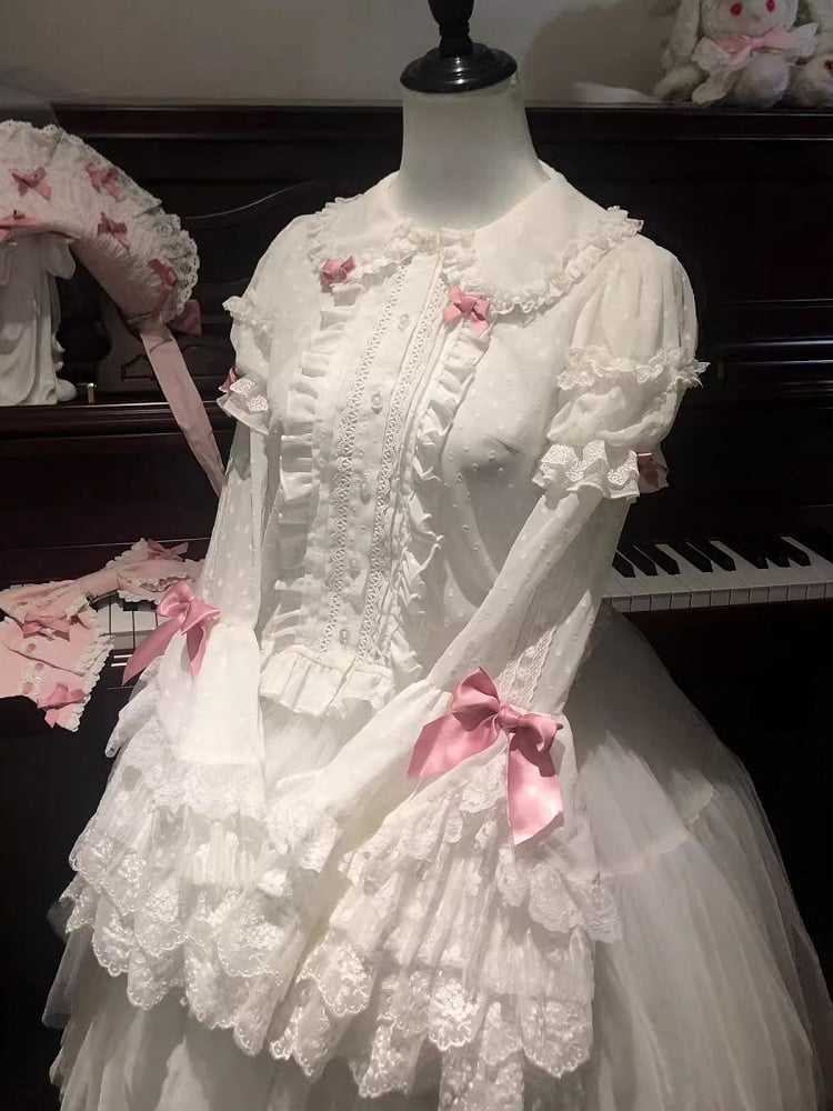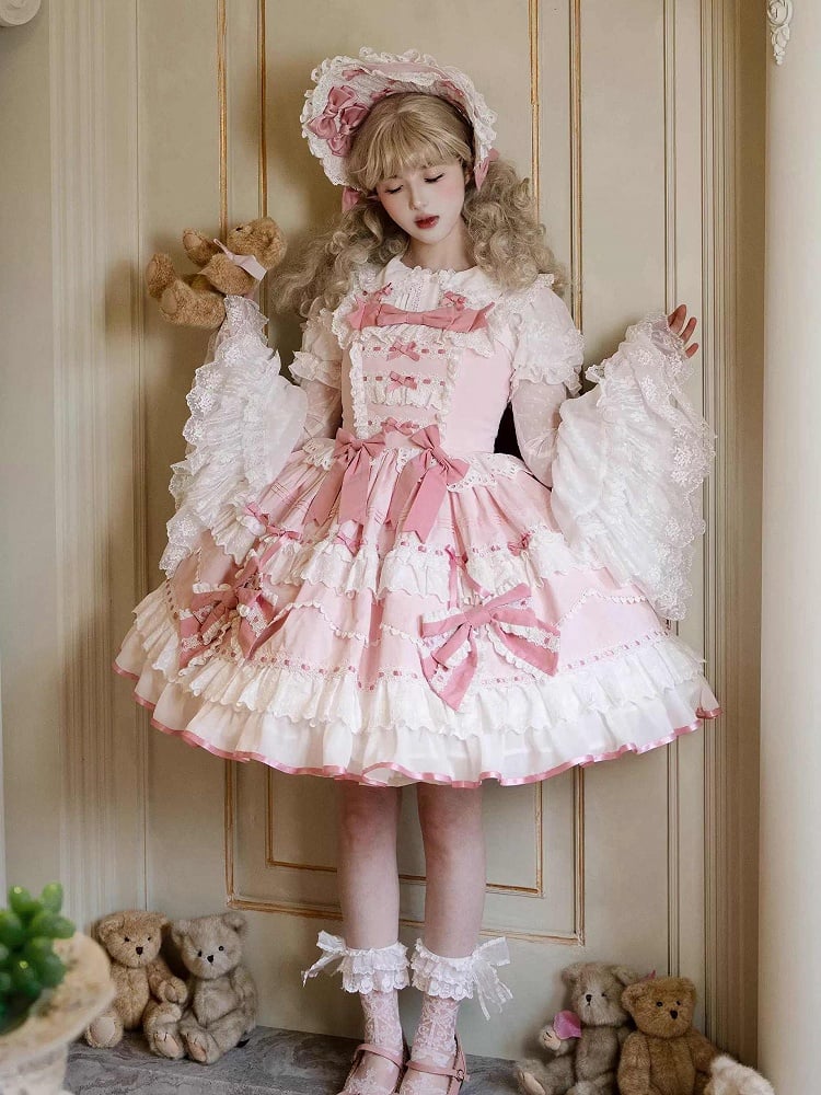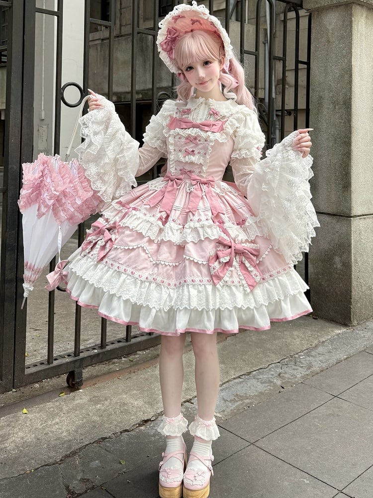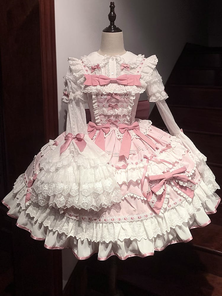 Rosa und weißes Old School Lolita Fashion Kleid Bowknot Detais Lolita JSK Set