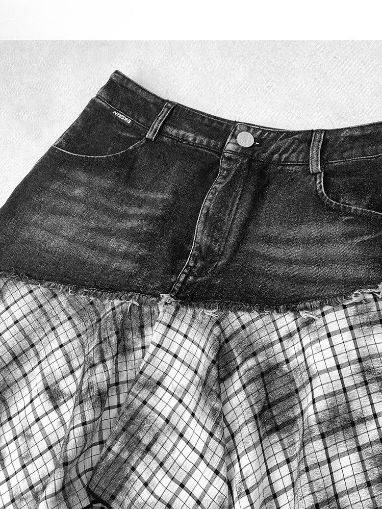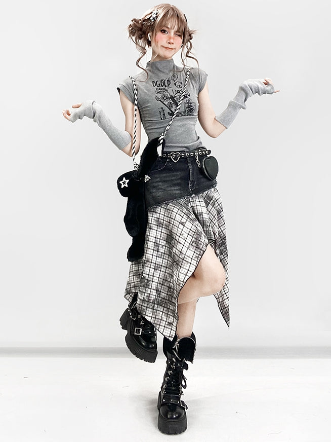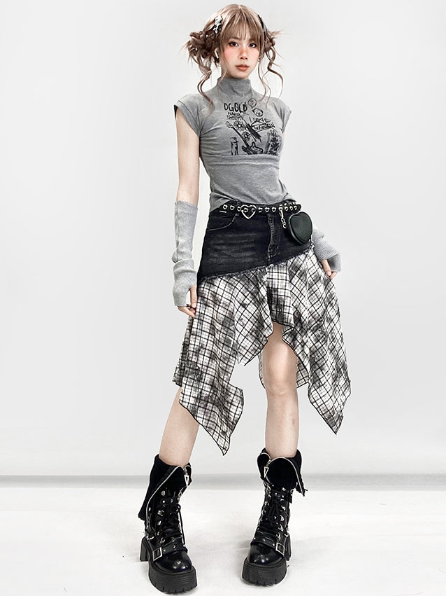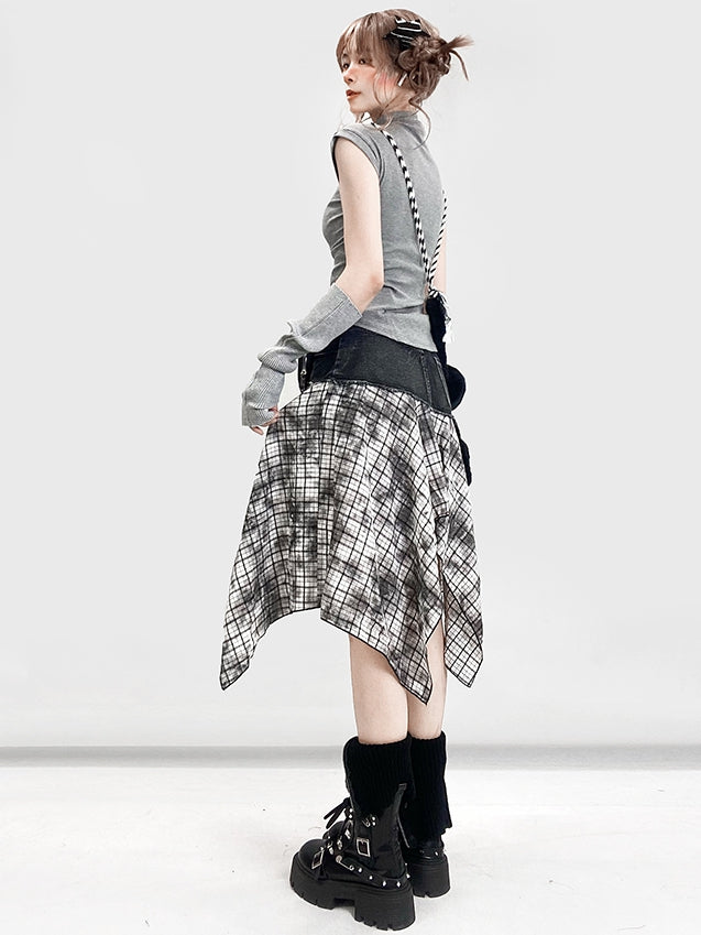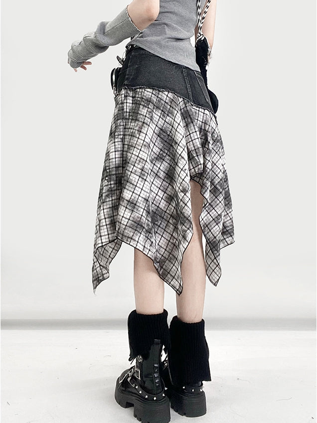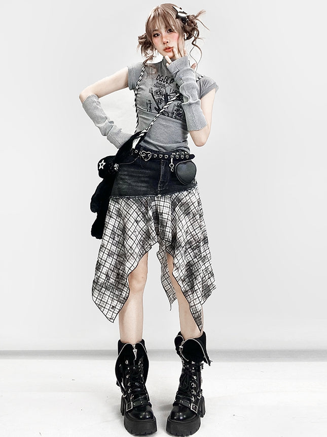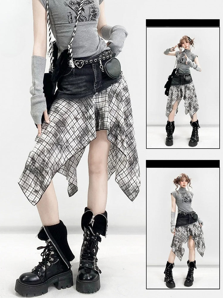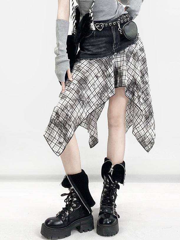 Schwarz-weißer Y2K-Rock mit Karomuster und Taschentuchsaum