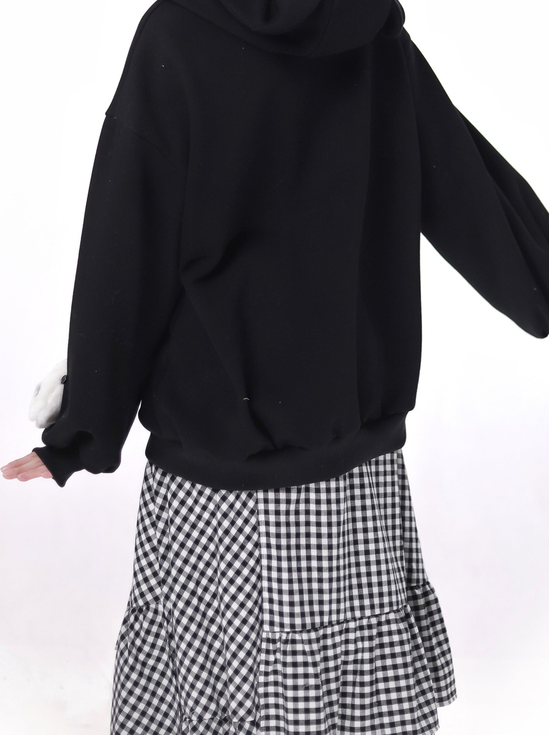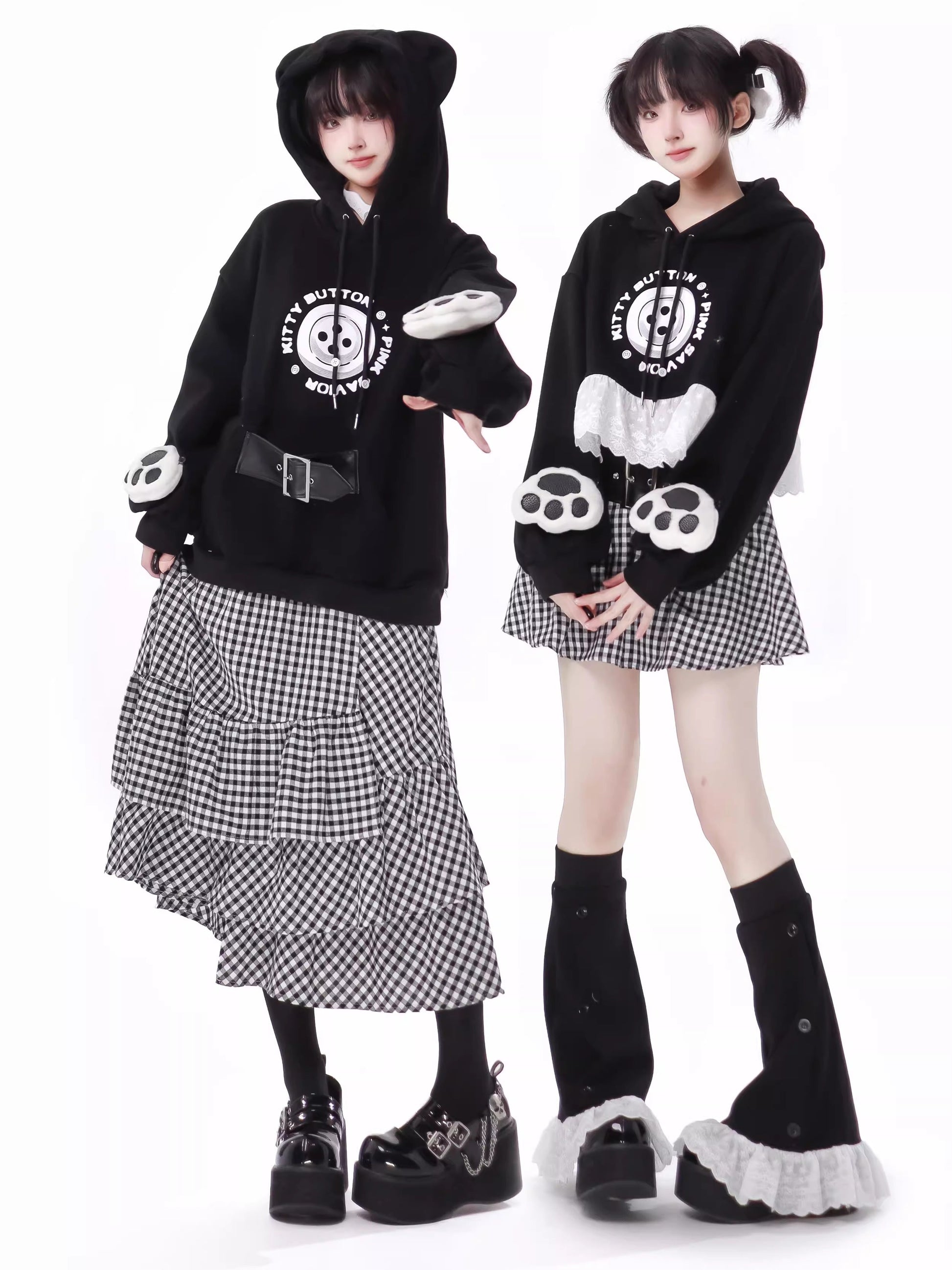 Bleiben Sie bequem und süß mit unserem Plash Black Food Sweat Chest Long Singing Long Skirt Suit. Dieses bezaubernde Outfit ist perfekt für den ganzen Tag und sorgt dafür, dass Sie beim Erledigen von Besorgungen oder beim Entspannen zu Hause stilvoll aussehen. Verabschieden Sie sich von langweiligen Trainingsanzügen und begrüßen Sie ultimative Niedlichkeit.