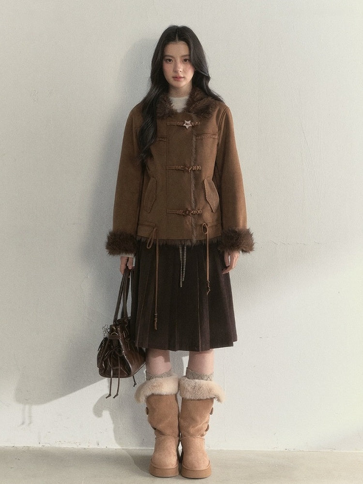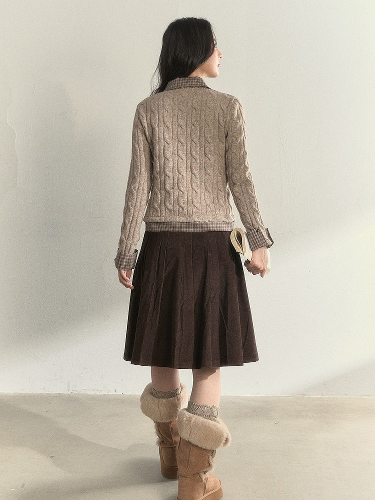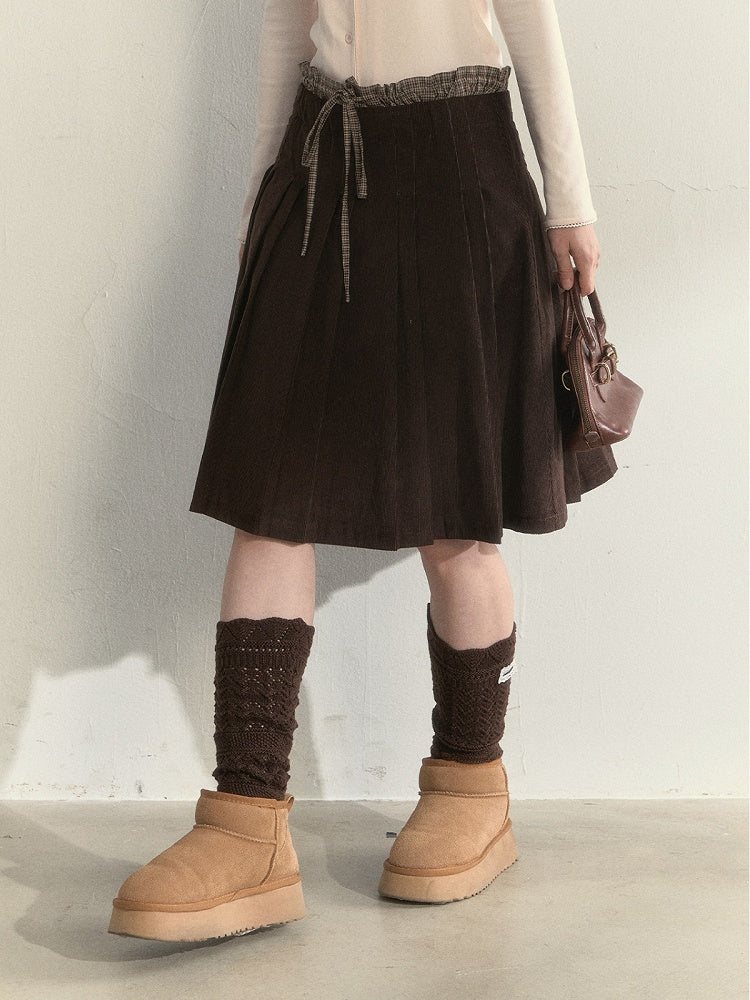 Pleated Waistband Brown Double Vintage Chestnut Skirt with