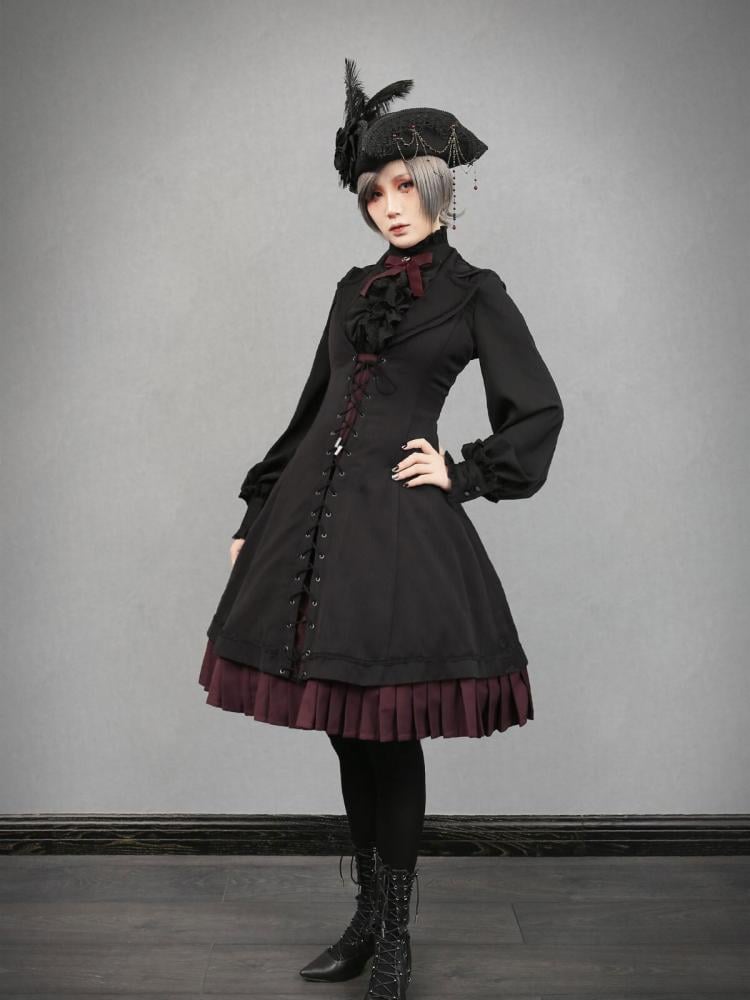 Schwarz-weißes Old School Lolita Fashion Kleid Bowknot Lolita JSK Set