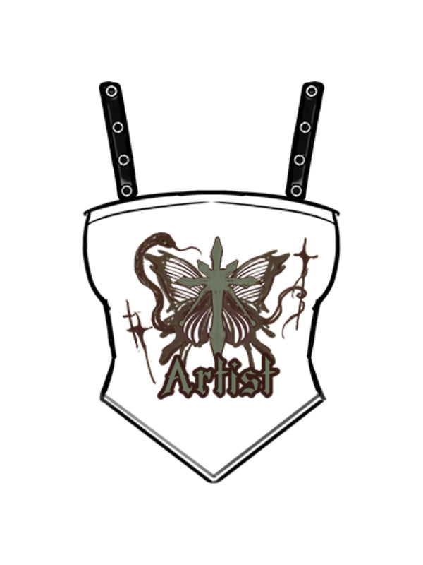 Plus Size Y2K Schmetterling Schwarz-Weiß Cami Top