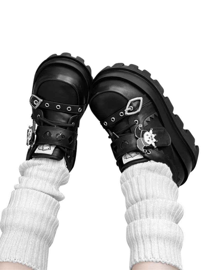 Verleihen Sie Ihrem Look mit den bezaubernden Poker Punk Plateauschuhen Clown eine verspielte Note. Diese Schuhe zeichnen sich durch ein einzigartiges Clown-Design aus, das garantiert für Aufsehen sorgt. Mit der bequemen Plateausohle und der robusten Konstruktion können Sie den ganzen Tag wie ein Boss stolzieren.