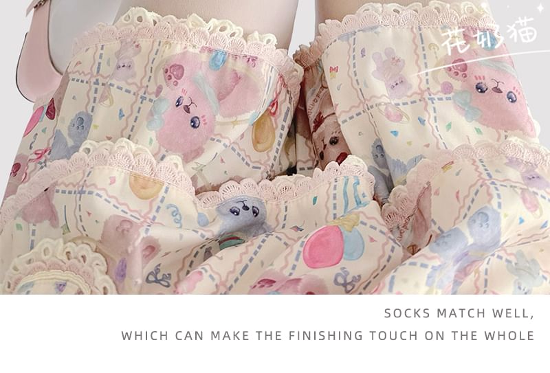 Transparente Strumpfhose mit Schleife und Katzenmuster