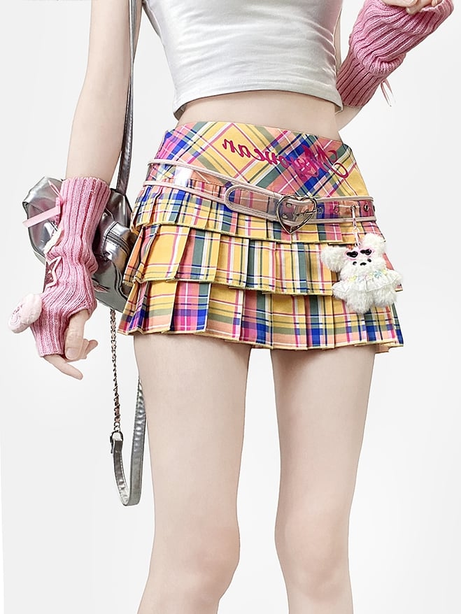 Drucken Bunter Rock Y2K Plissee Muster Plaid Buchstabe