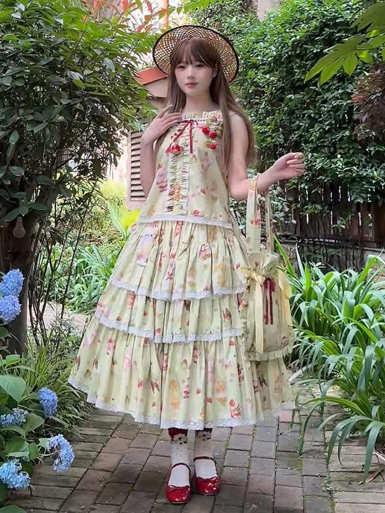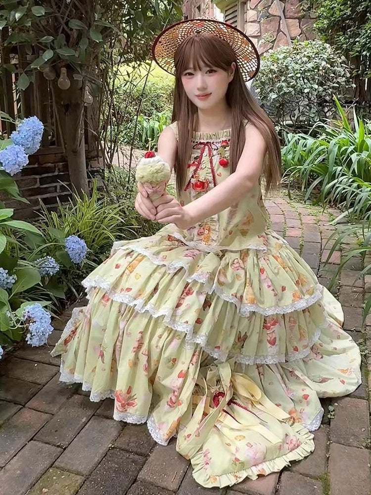 Grünes Sommer-Camisole-Top mit Fruit Parfait-Print