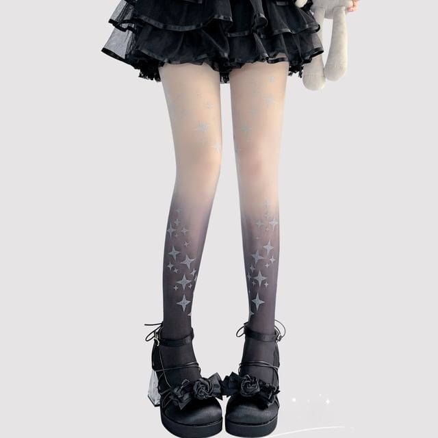 Transparente Strumpfhose mit Farbverlauf und Stern-Print