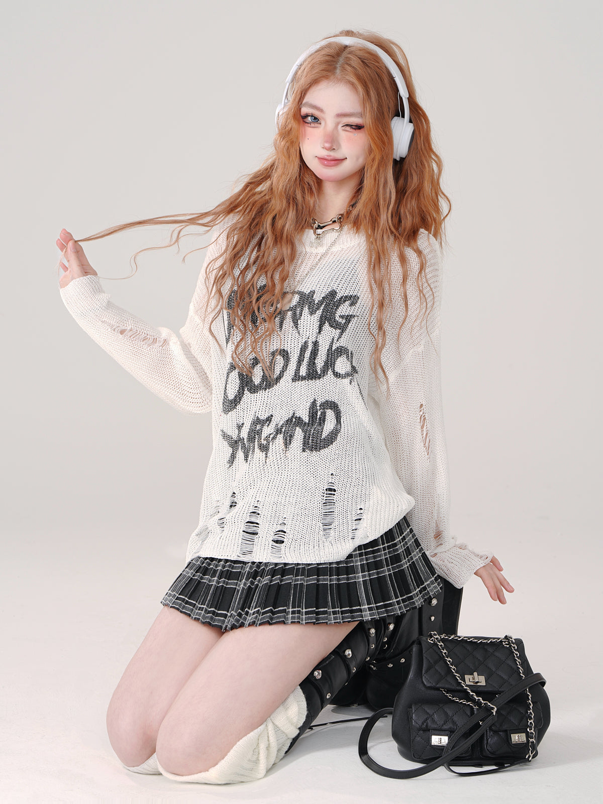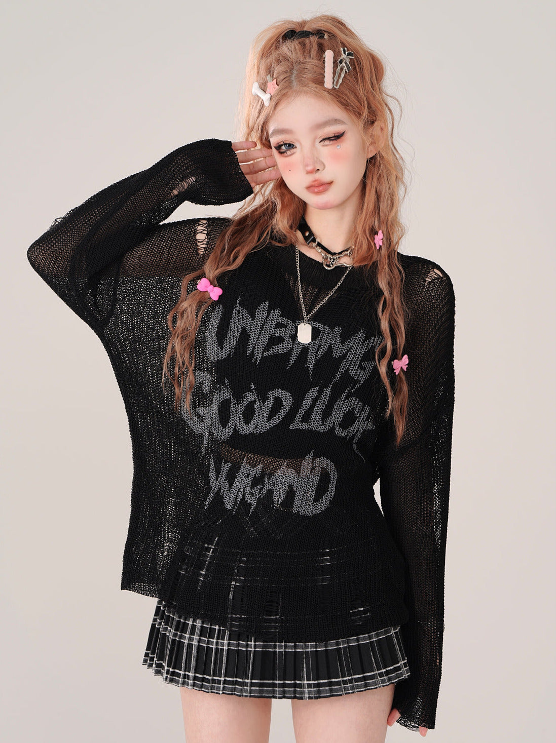 Dieses bezaubernde Stricktop mit seinem lustigen Rippenmuster und charmanten Buchstaben verleiht jedem Outfit einen Hauch von Niedlichkeit. Das transparente Material ist leicht und atmungsaktiv und sorgt für hohen Tragekomfort. Mit diesem hübschen Top bleiben Sie stilvoll und bequem.
