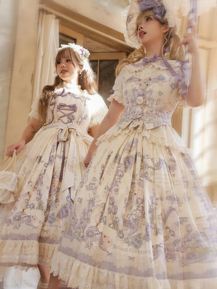 Rosa und weißes Old School Lolita Fashion Kleid Bowknot Detais Lolita JSK Set