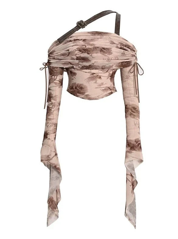 Bedrucktes Top Hot Rose Girl Mesh Bottle Maillard