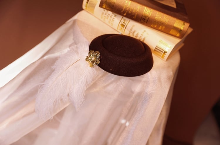 In diesem Preis sind ein Kleid, ein Minihut mit Federhaarspange, ein Paar Ärmel, Goldringe und ein Paar Strümpfe enthalten.