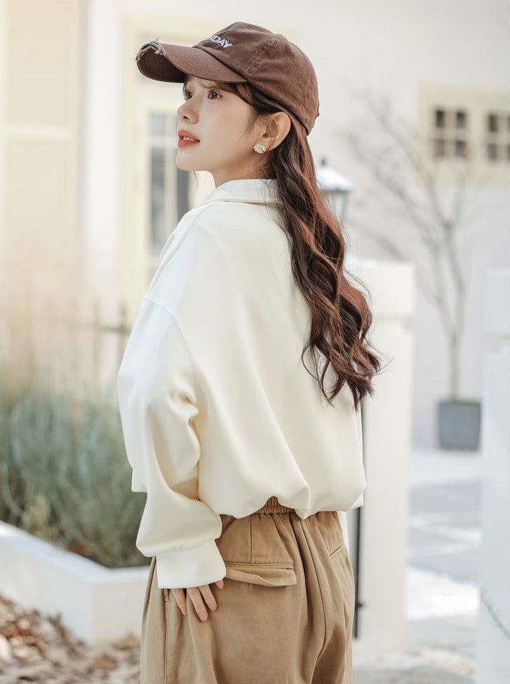 Bleiben Sie gemütlich und stilvoll in unserem bezaubernden Pullover-Reißverschluss-Sweatshirt im College-Stil mit Revers. Mit praktischem Reißverschluss vorne und trendigem Revers-Design ist dieses Sweatshirt perfekt für jeden lässigen Anlass. Bleiben Sie warm und süß in diesem Must-have.