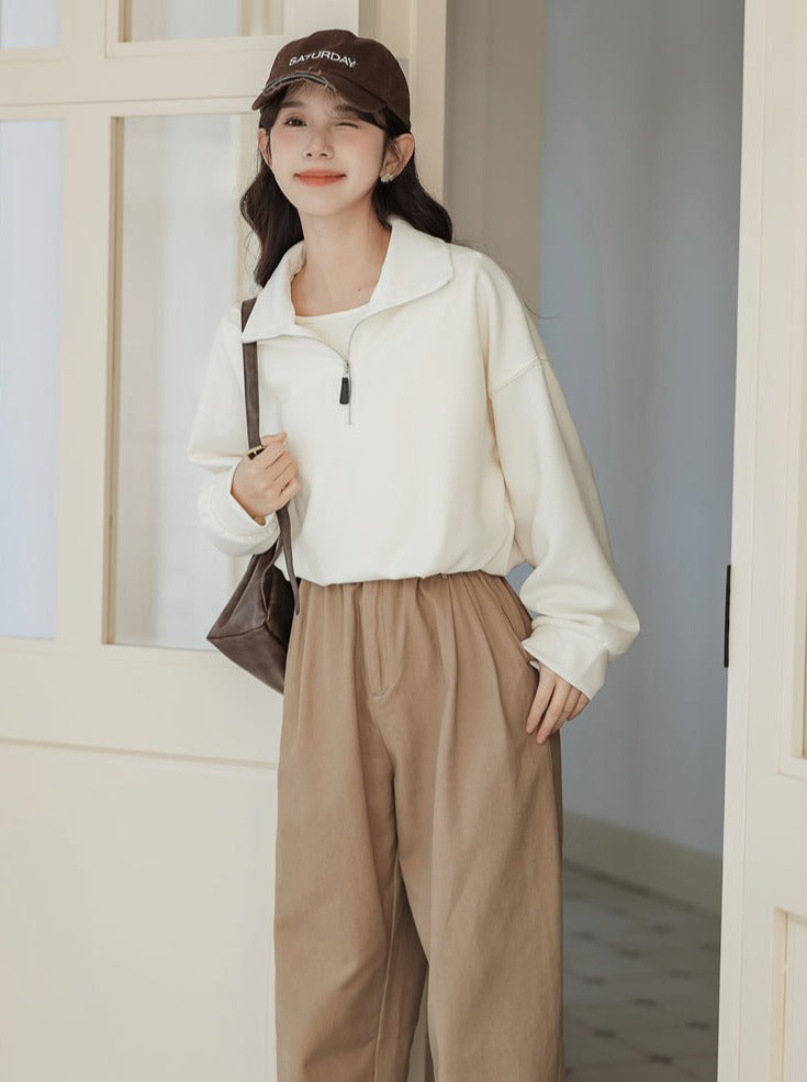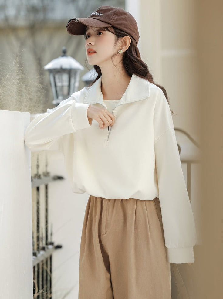 Pullover mit Reißverschluss, Sweatshirt im College-Stil, Revers