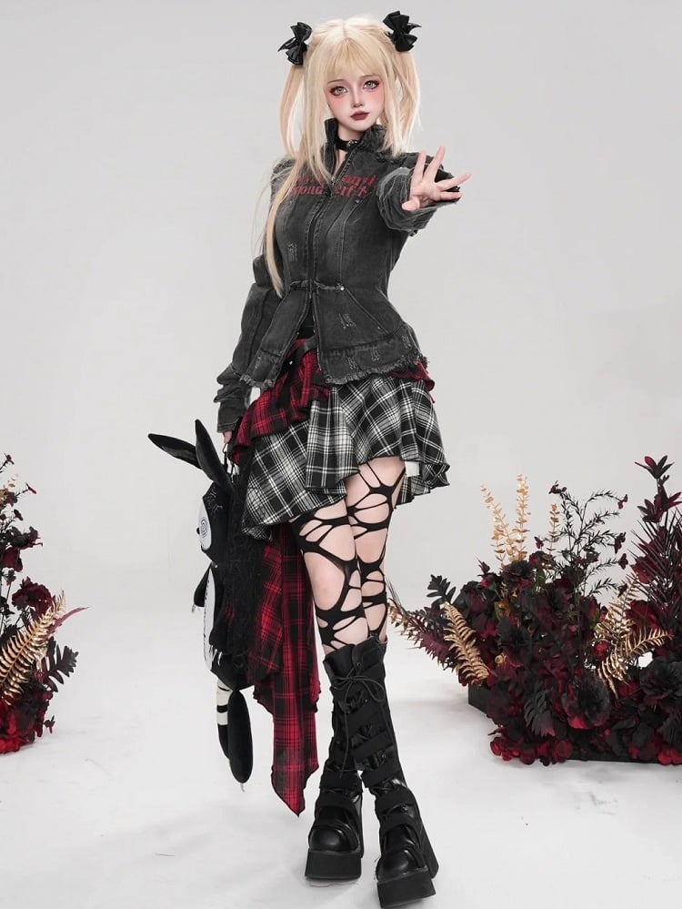 Diese süße Jeansjacke besticht durch ein einzigartiges Punk-Design mit schwarzen Buchstabenprints und Used-Look. Der Slim-Fit-Schnitt sorgt für einen schmeichelhaften Look und verleiht jedem Outfit einen kantigen Touch. Mit dieser Must-have-Jacke bist du immer stylisch und trendy.