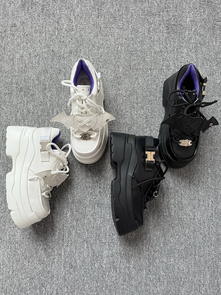Punk Heart PU-Akzente Schwarze Schnür-Sneaker Fledermaus - Design Flügel Abnehmbar mit Plateau
