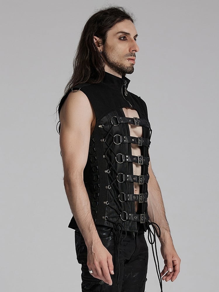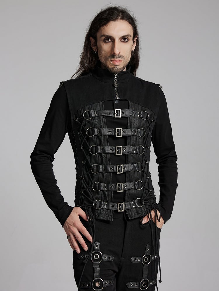 Zip Closure Design Jacket Asymmetrical Black Punk -