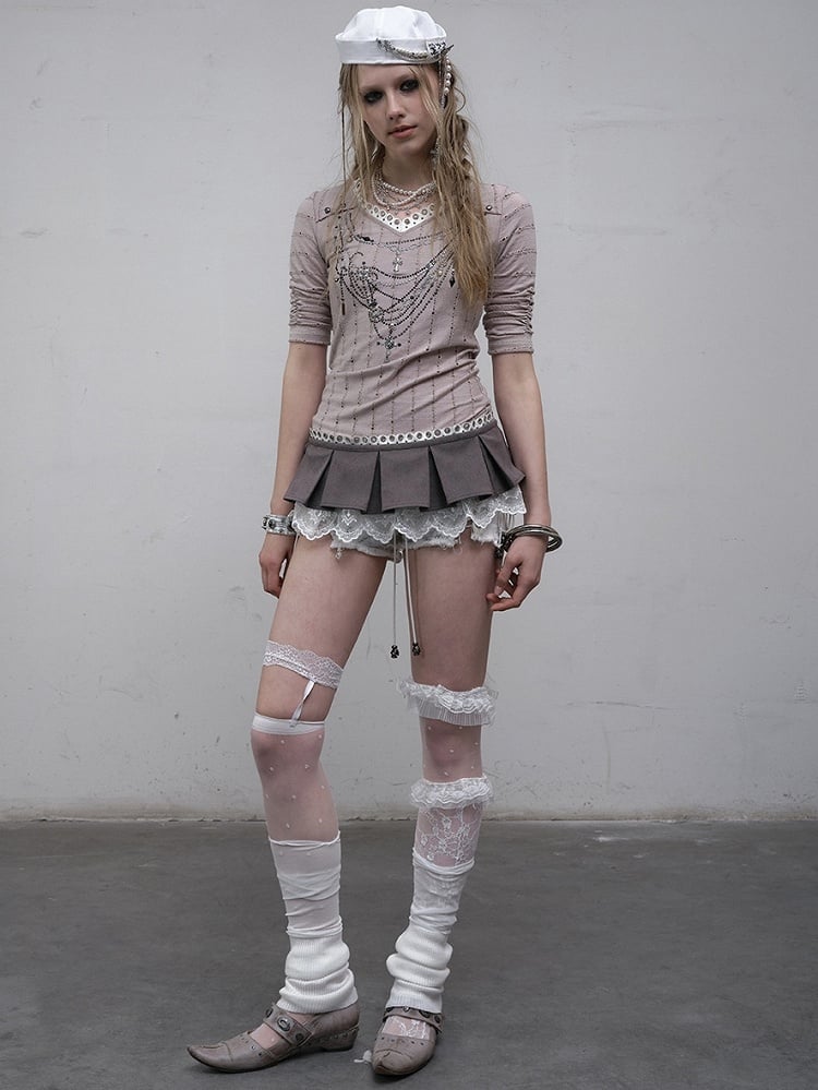 Pink/Blauer Wasteland Punk Minirock mit Spitzenbesatz und Schleife und Kellerfalten