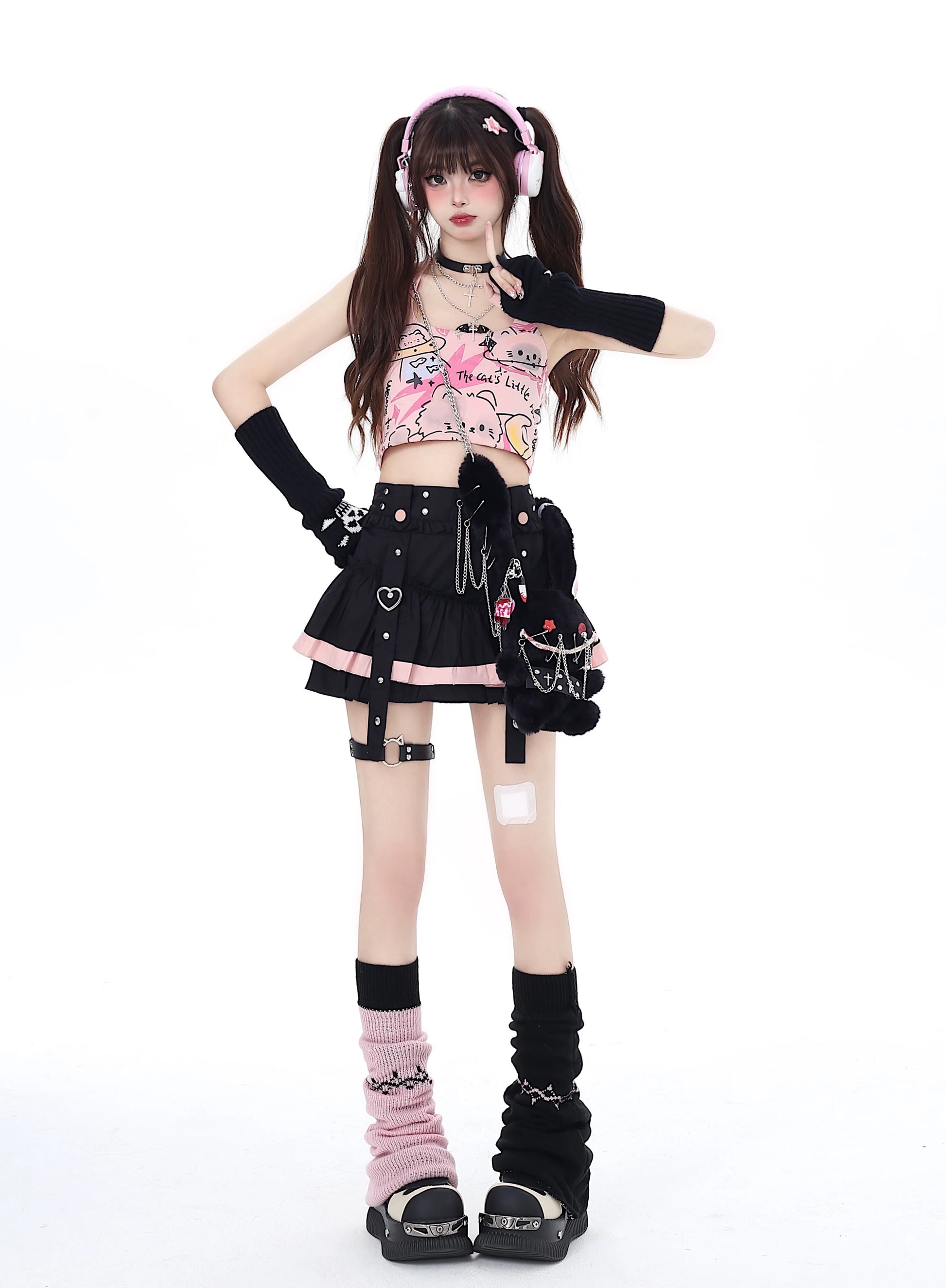 Pure Cute Print Neckholder Top Graffiti Katze