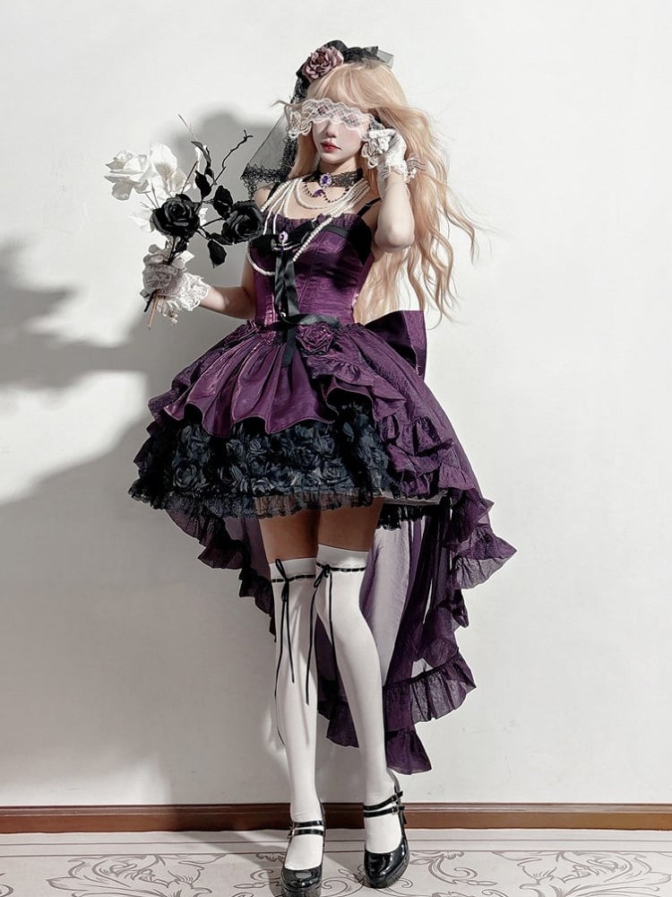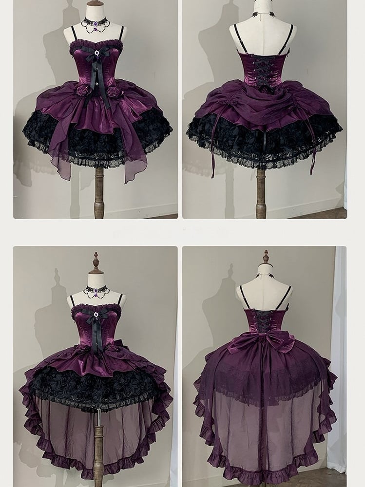 Purple Black Strapless Gothic Lolita Dress - Rose Bouquet Boned Corset