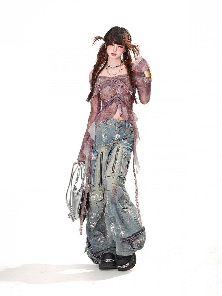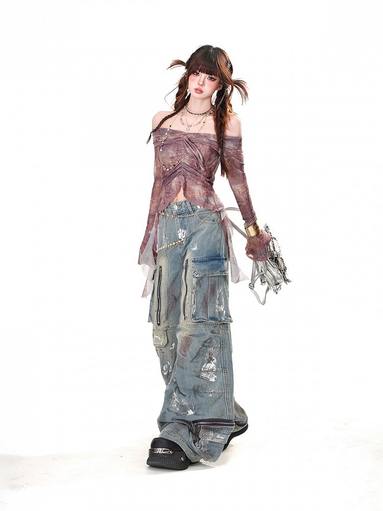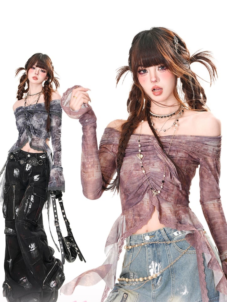 Dieses glamouröse Top mit schulterfreiem Ausschnitt und Kordelzug in Lila/Grau ist die perfekte Mischung aus Chic und Femininität. Der zarte schulterfreie Ausschnitt und der Kordelzug verleihen dem Oberteil einen Hauch von Verspieltheit, während das schmeichelhafte Design Ihre Kurven betont. Werten Sie Ihre Garderobe mit diesem schönen Top auf.