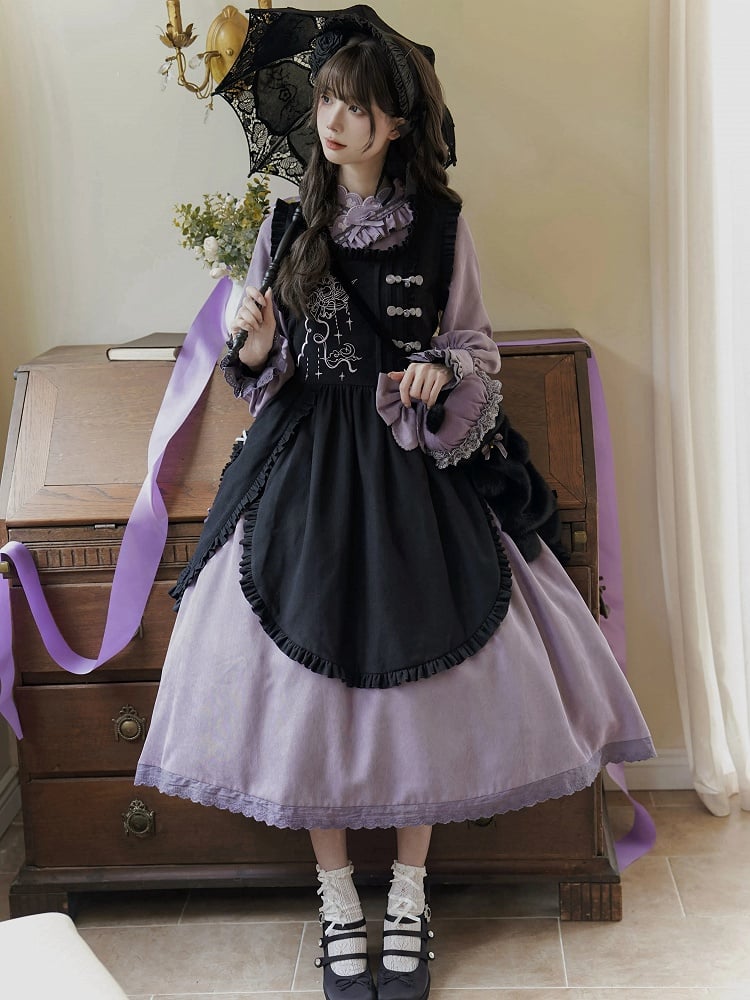 Schwarz-weißes Old School Lolita Fashion Kleid Bowknot Lolita JSK Set
