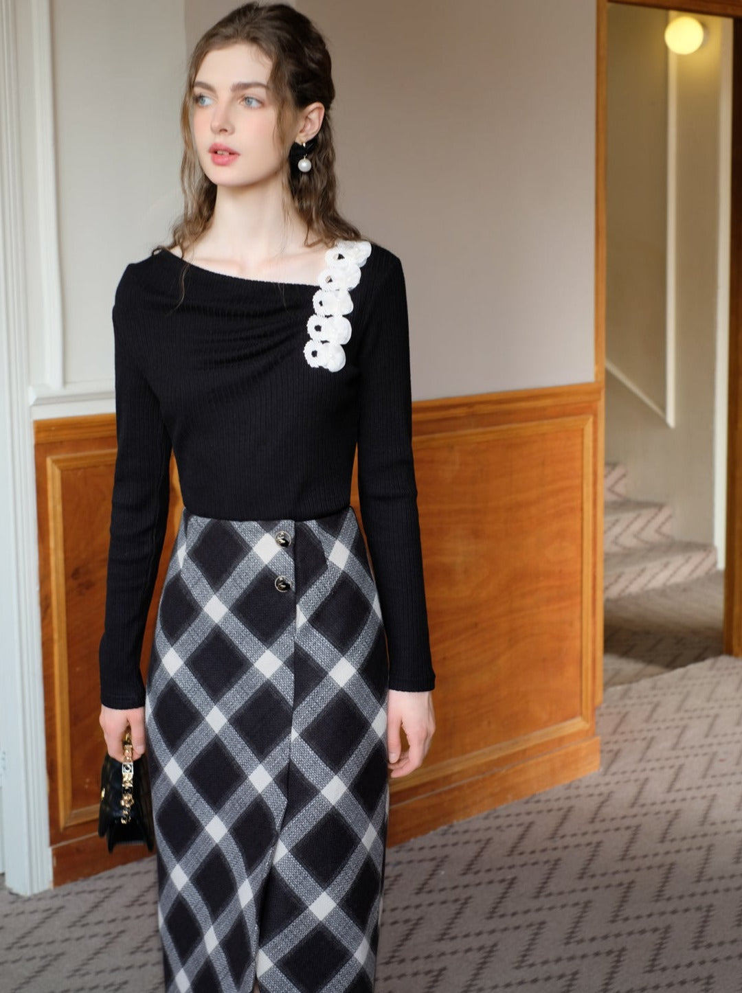 Schwarz-weißes Old School Lolita Fashion Kleid Bowknot Lolita JSK Set