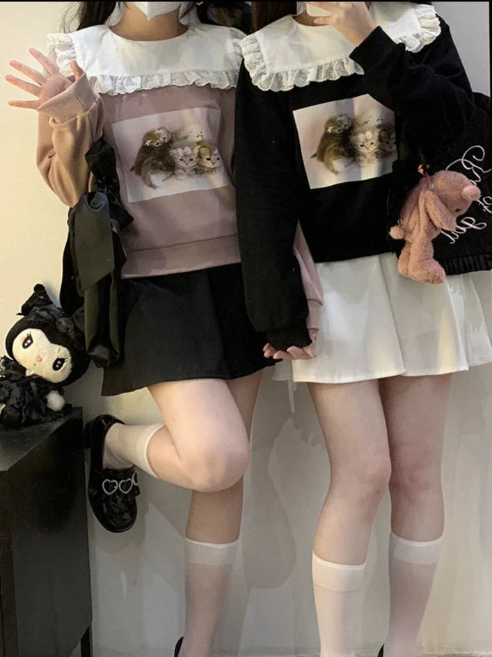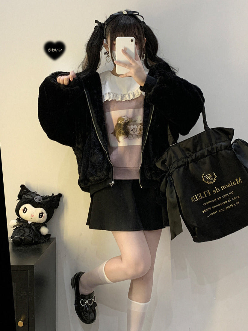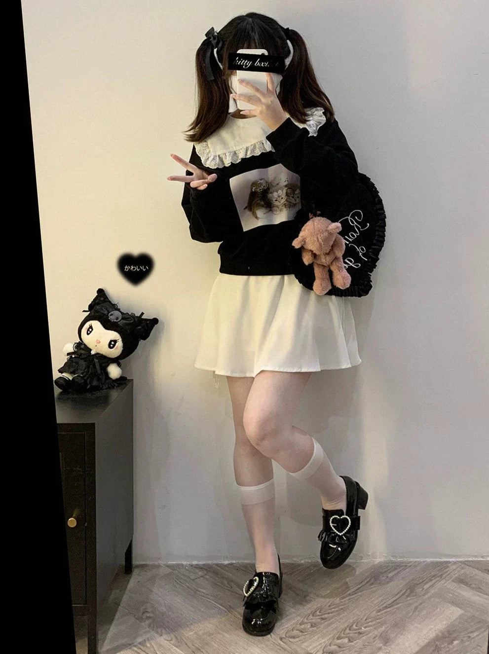 Schwarz-weißes Old School Lolita Fashion Kleid Bowknot Lolita JSK Set