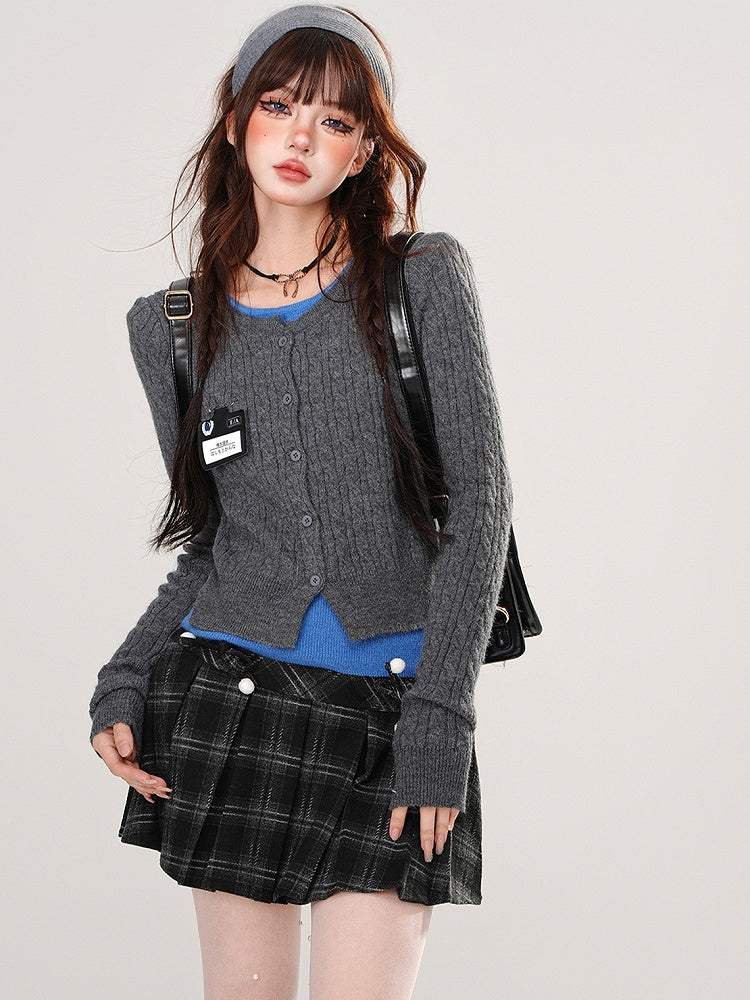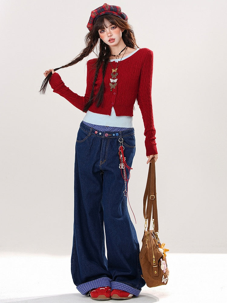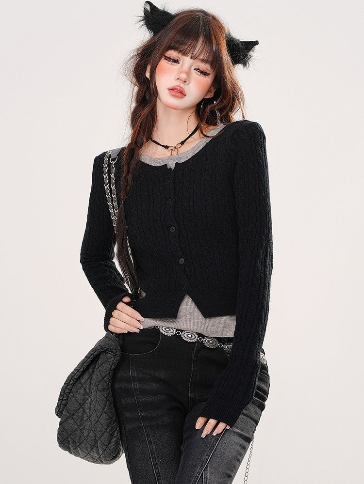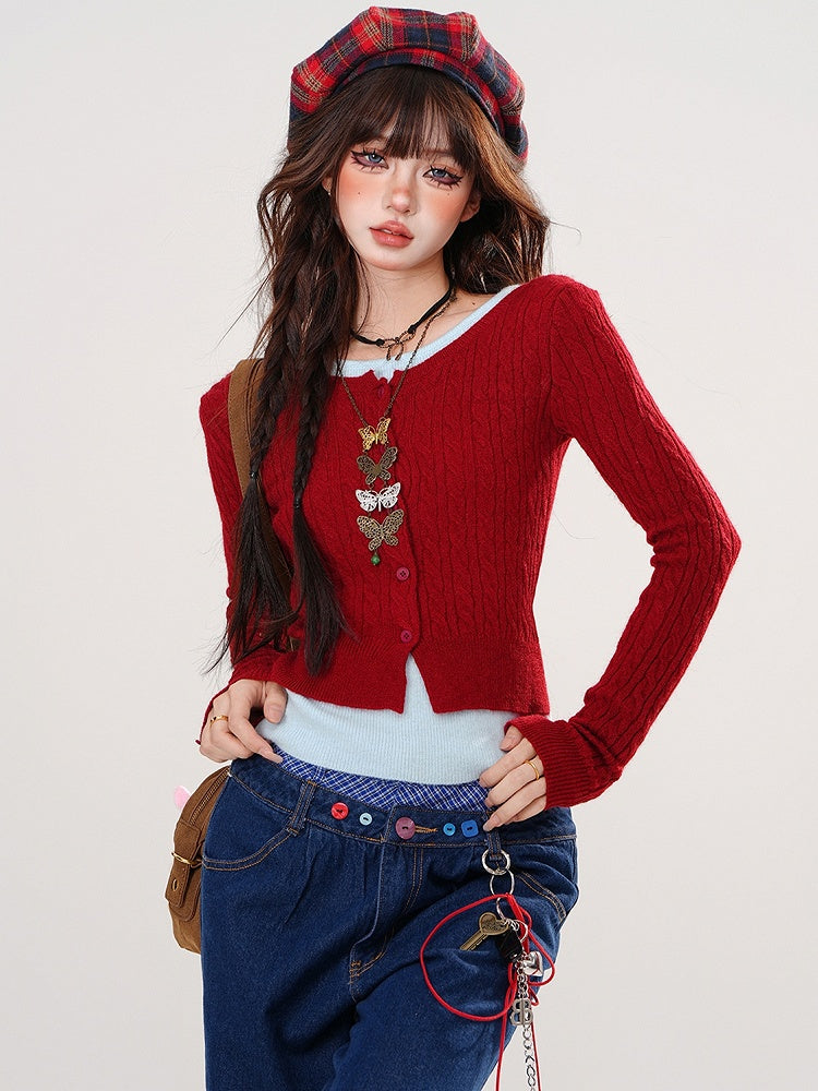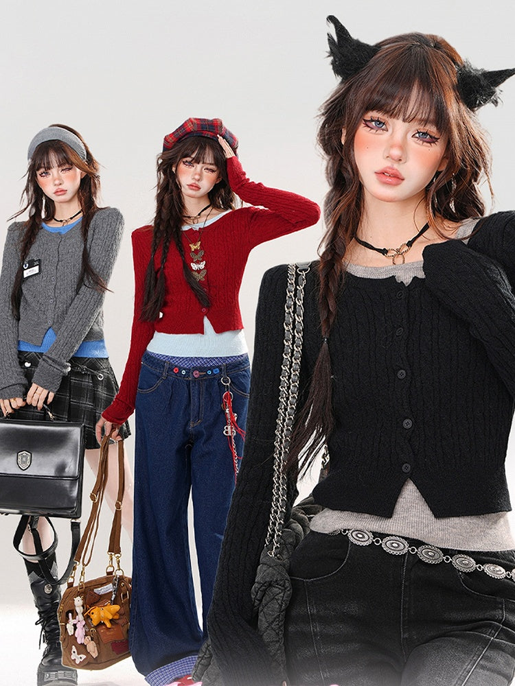 Dieses bezaubernde, zweiteilige, eng anliegende Stricktop in Rot/Schwarz/Grau ist stylisch und vielseitig zugleich. Sein einzigartiges Design erweckt den Eindruck eines Zweiteilers, während das eng anliegende Strickmaterial Ihre Figur betont. Perfekt für einen süßen und trendigen Look.