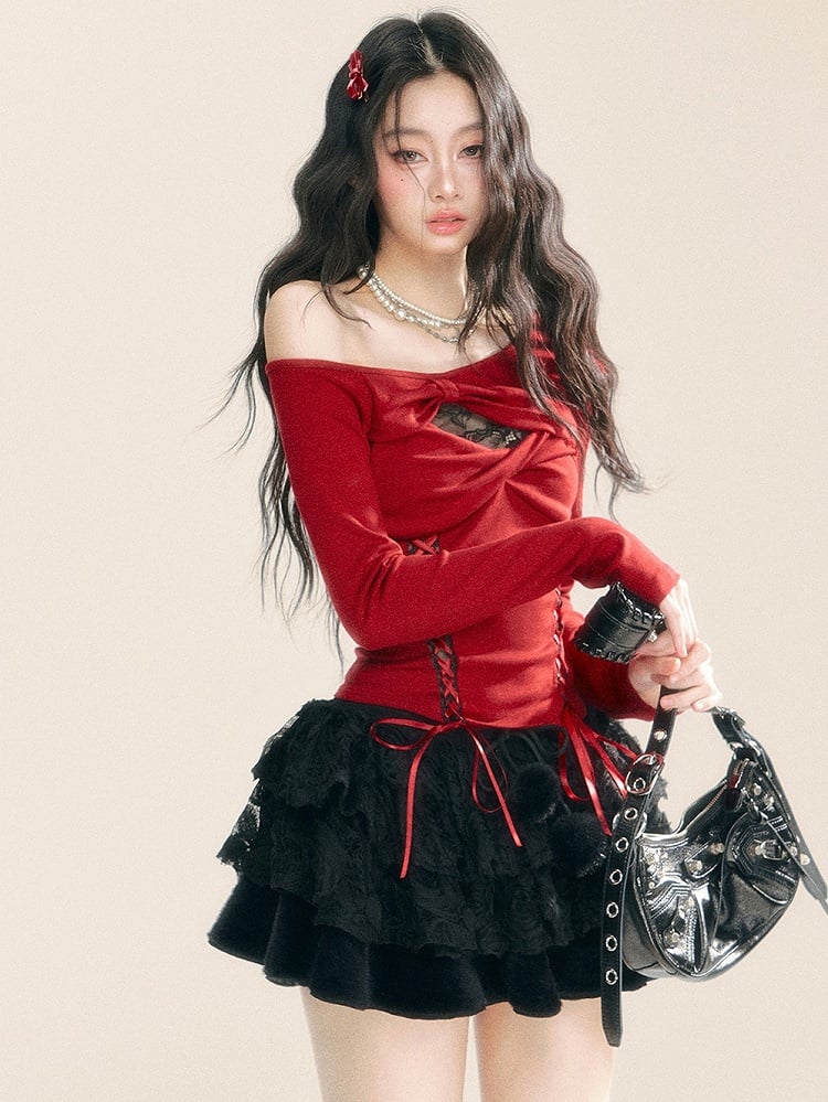 Rotes Stricktop mit Cut-Outs und Schnürung