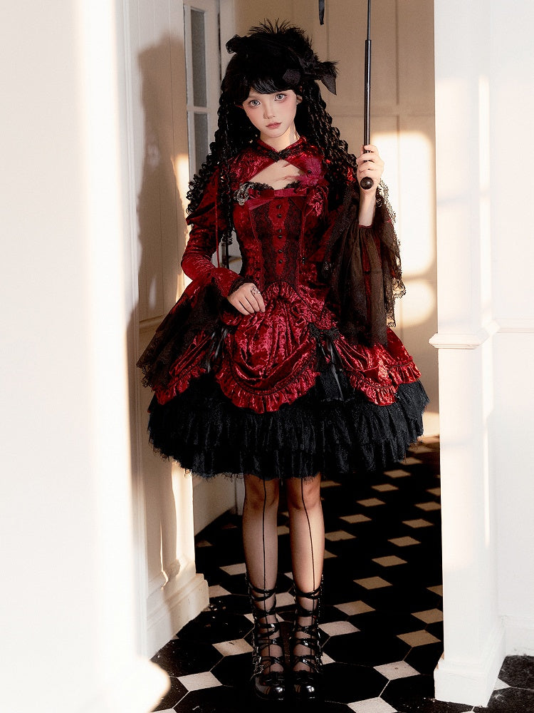 Werten Sie Ihre Garderobe mit diesem süßen roten Samttop auf! Die langen Glockenärmel verleihen dem Oberteil einen Hauch von Verspieltheit und das abnehmbare Design ermöglicht vielseitige Stylings. Zeigen Sie Ihre süße Seite mit diesem hübschen Top, verziert mit zarten Schlangenknochen.