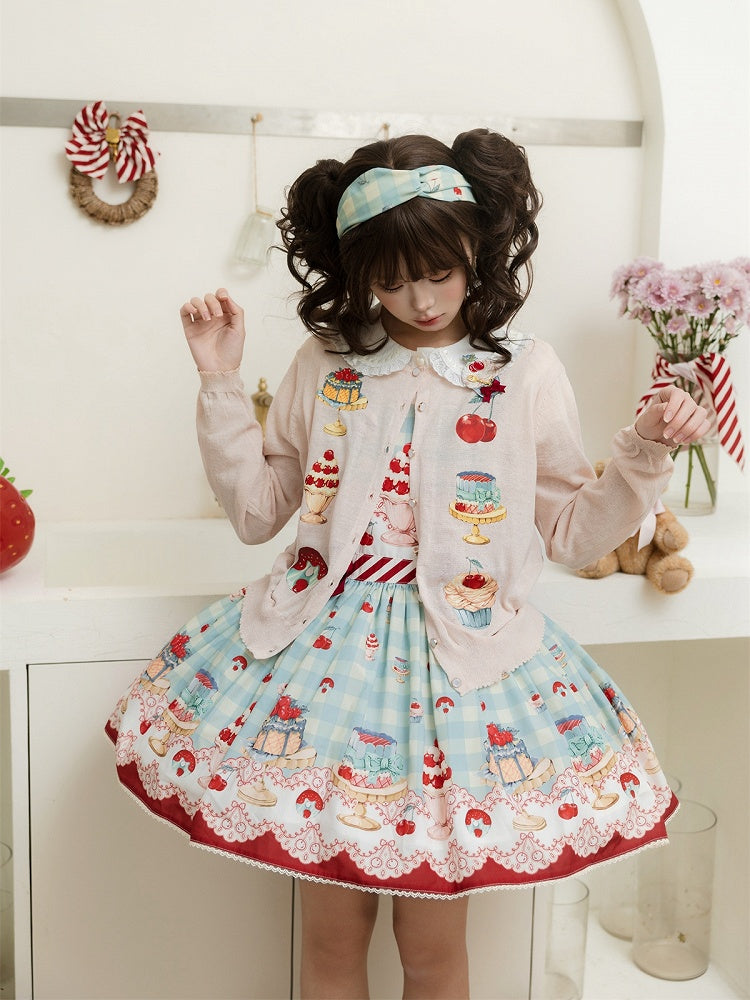Blau-weißes Old School Lolita Fashion Kleid mit Schleife und Details, JSK-Set