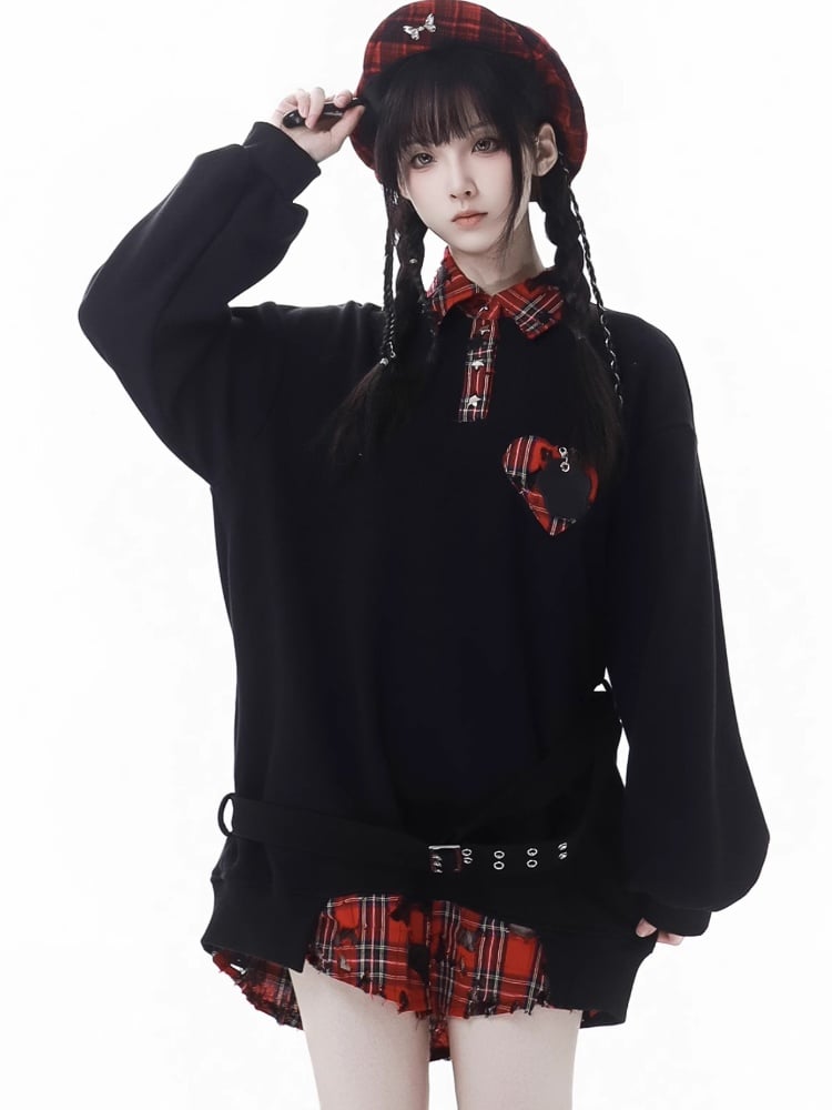 In unserem rotkarierten, schwarzen Hemdblusenkleid mit Herz-Applikation im Used-Look sind Sie garantiert süß. Die Herz-Applikation verleiht diesem trendigen und vielseitigen Kleid einen Hauch von Süße. Perfekt für einen lässigen Tag oder schick für eine Nacht in der Stadt.