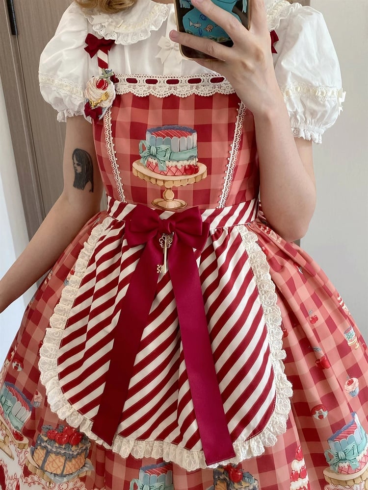 Rosa und weißes Old School Lolita Fashion Kleid Bowknot Detais Lolita JSK Set