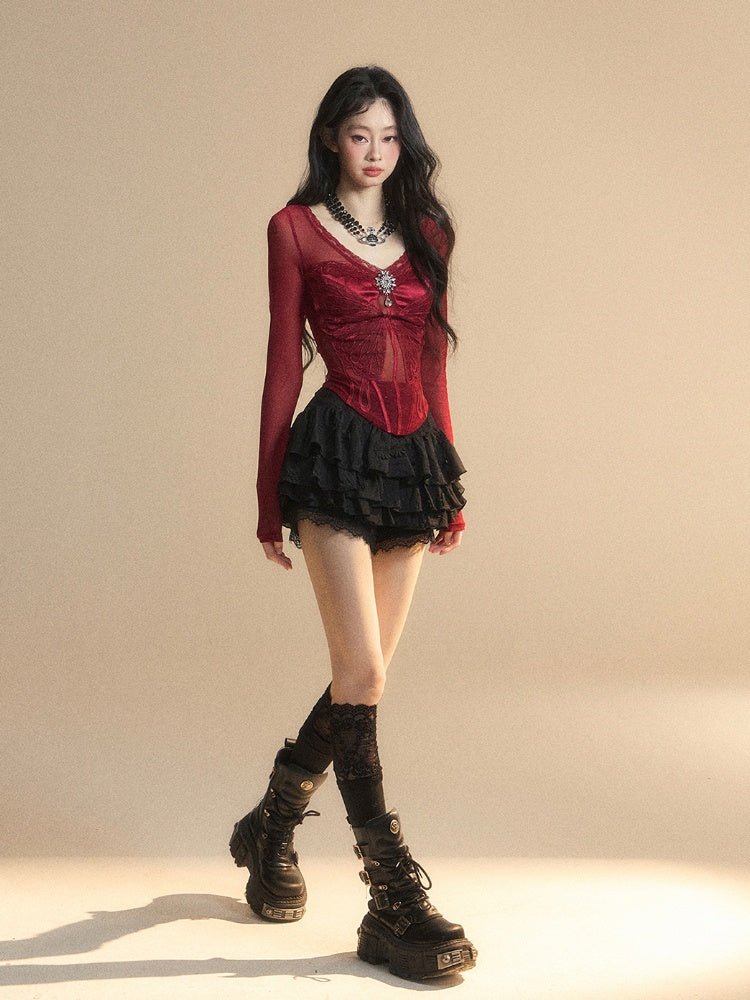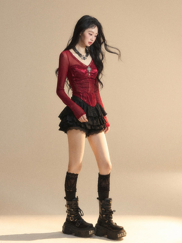 ● Gebogener Saum / Spitzenbesatz / Halbtransparent