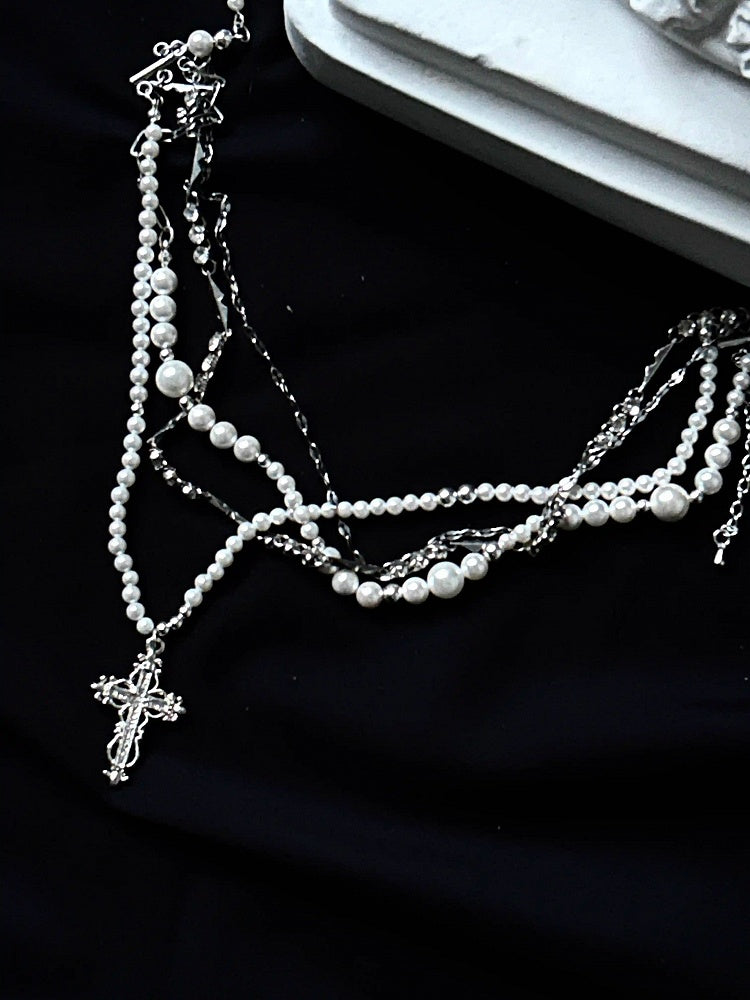 Rot/Weiße Gothic Lolita Halskette mit Kreuzanhänger